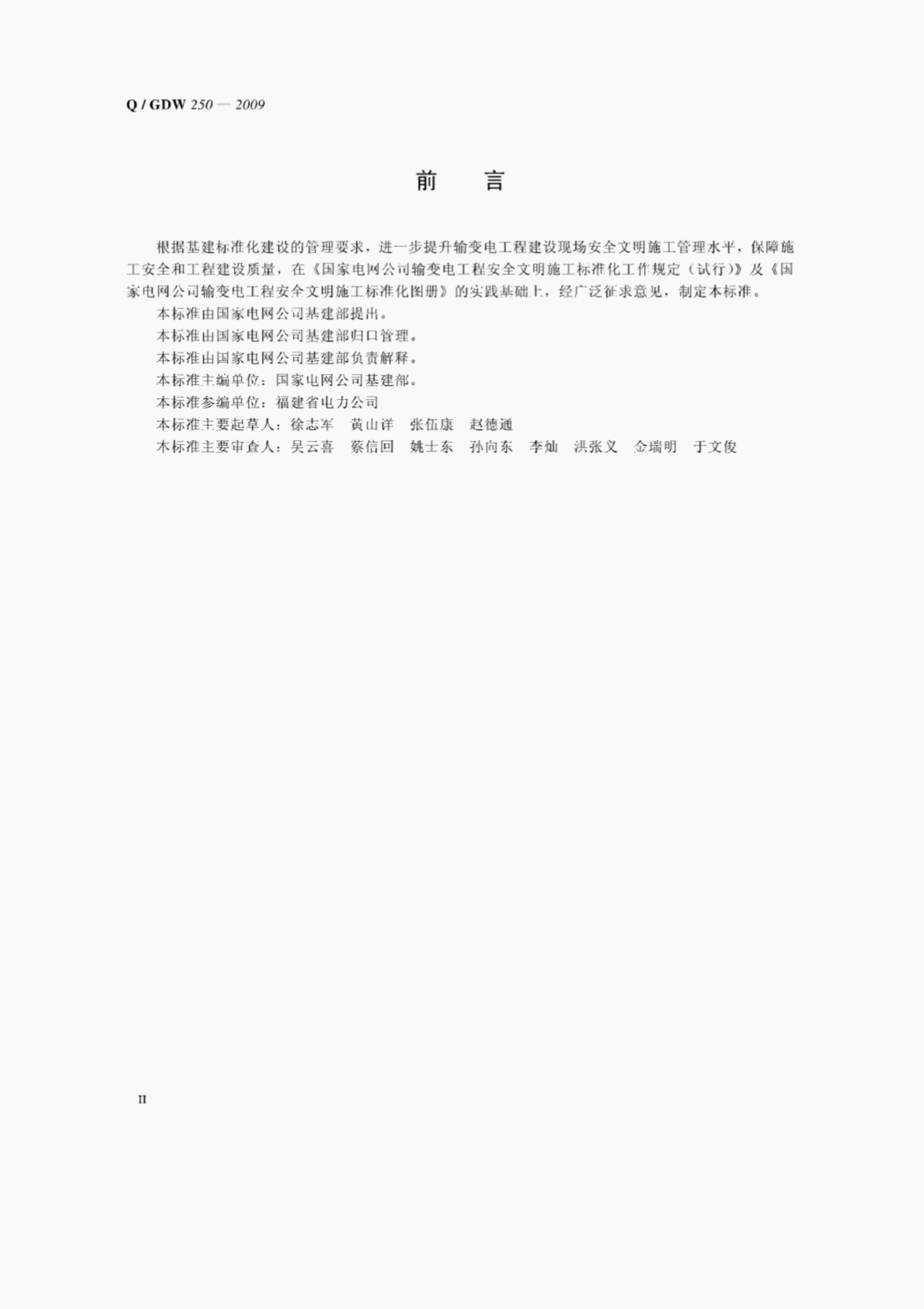 Q/GDW 250-2009 输变电工程安全文明施工标准