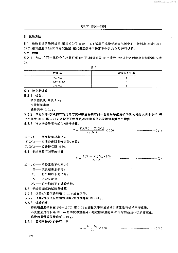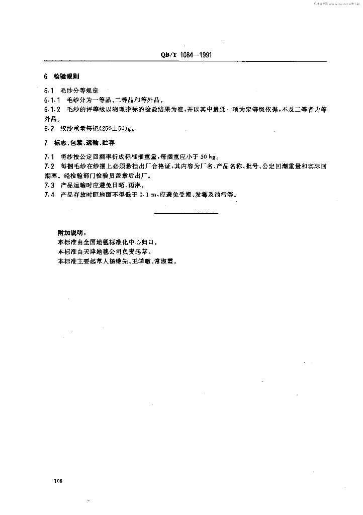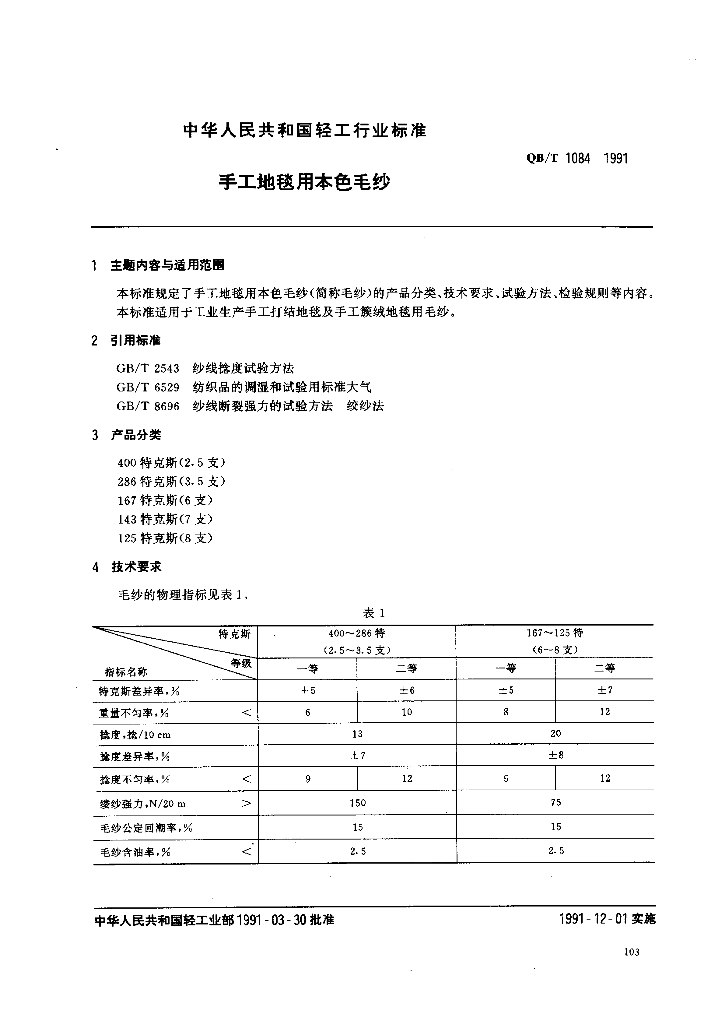 QB/T 1084-1991 手工地毯用本色毛纱