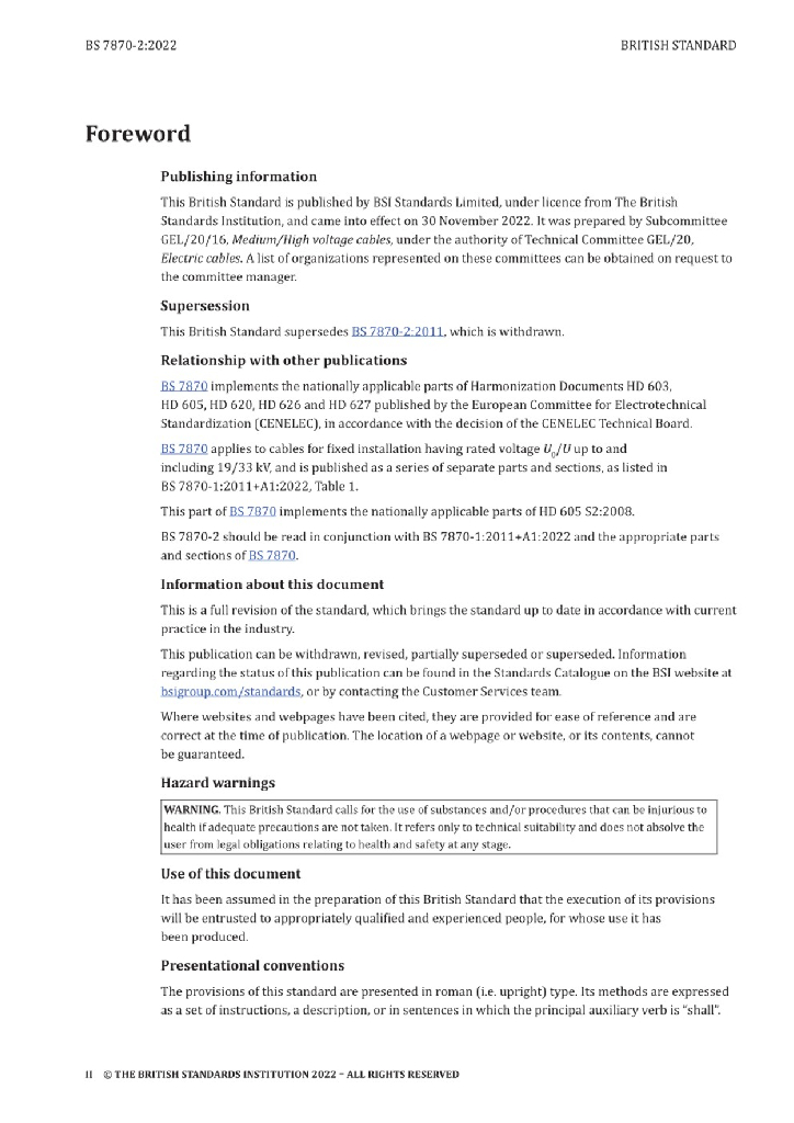 BS 7870-2:2022 配电和发电用中低压聚合物绝缘电缆 试验方法