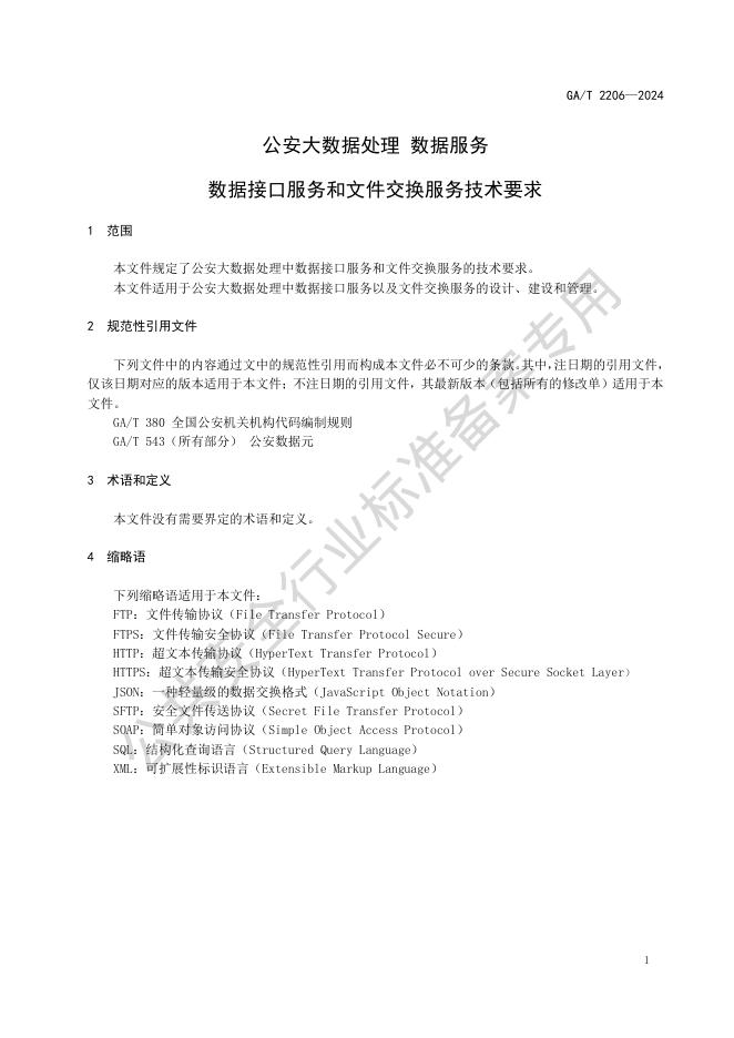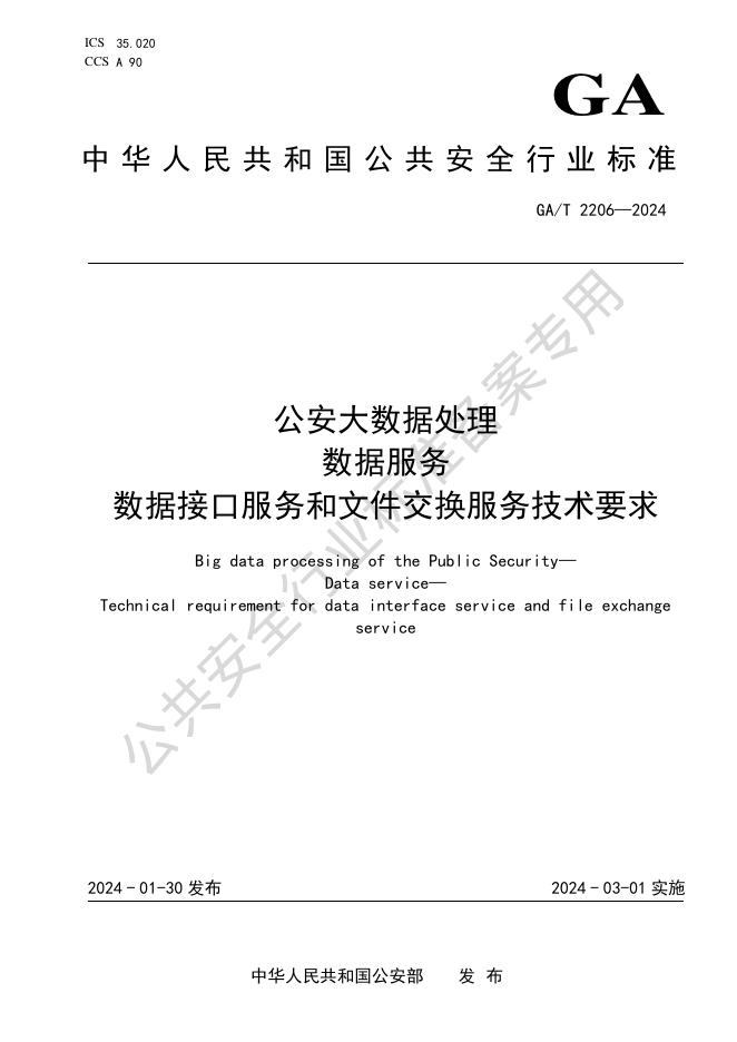 GA/T 2206-2024 公安大数据处理 数据服务 数据接口服务和文件交换服务技术要求