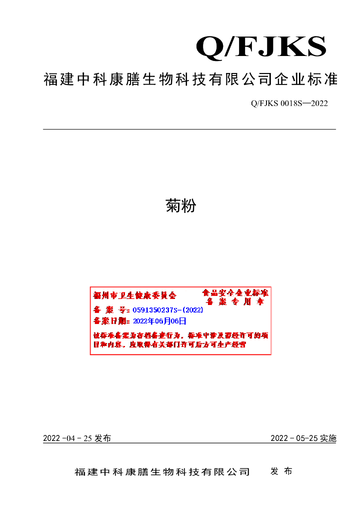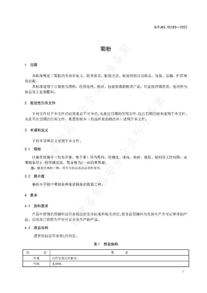 Q/FJKS 0018S-2022 菊粉