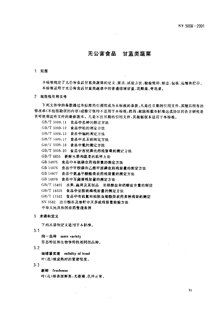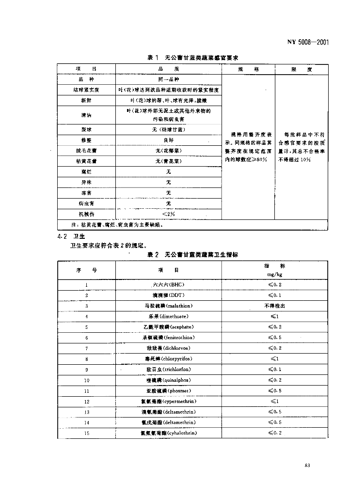 NY 5008-2001 无公害食品 甘蓝类蔬菜