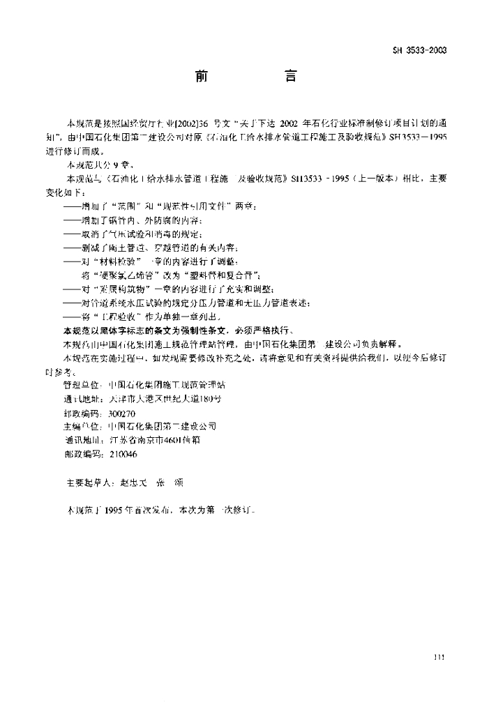 SH 3533-2003 石油化工给水排水管道工程施工及验收规范