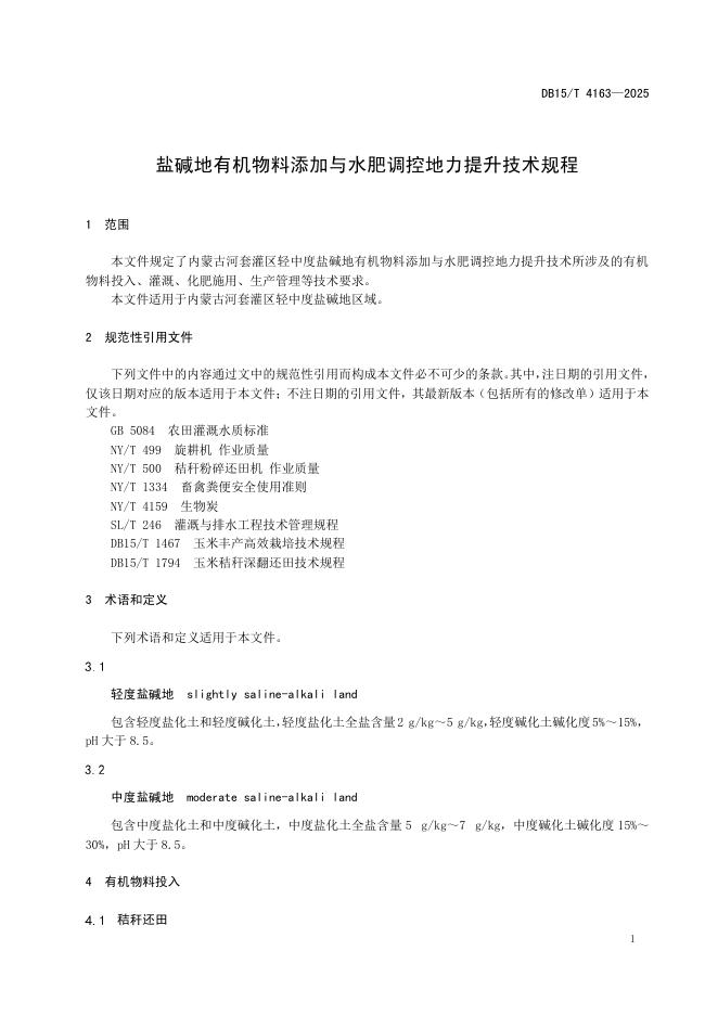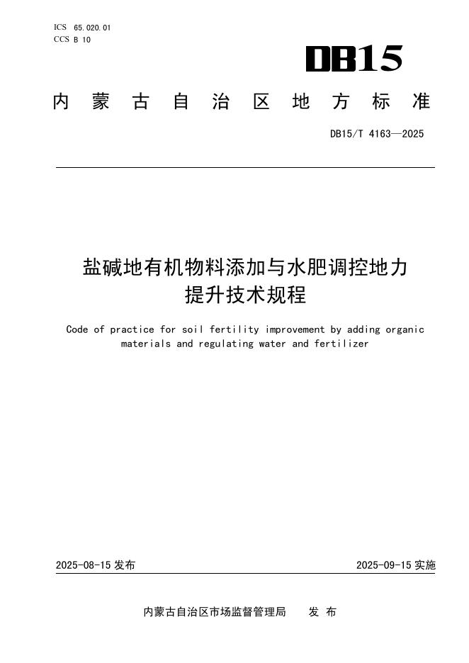 DB15/T 4163-2025 盐碱地有机物料添加与水肥调控地力提升技术规程