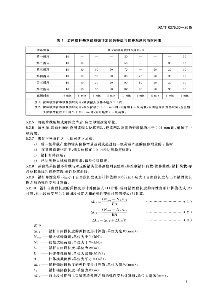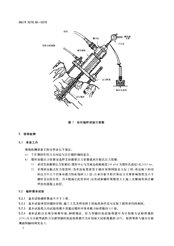 DZ/T 0276.30-2015 岩石物理力学性质试验规程 第30部分:岩体锚杆载荷试验