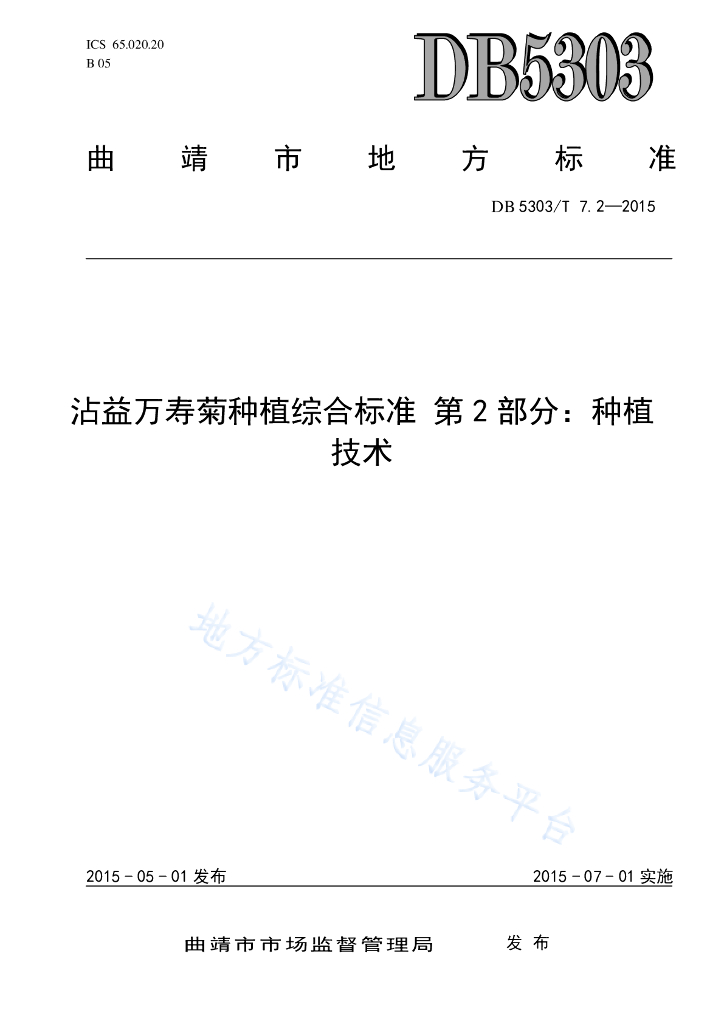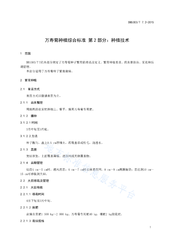 DB5303/T 7.2-2015 沾益万寿菊种植综合标准第2部分:种植技术