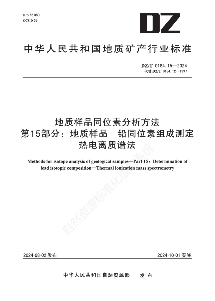 DZ/T 0184.15-2024 地质样品同位素分析方法 第15部分:地质样品 铅同位素组成测定 热电离质谱法
