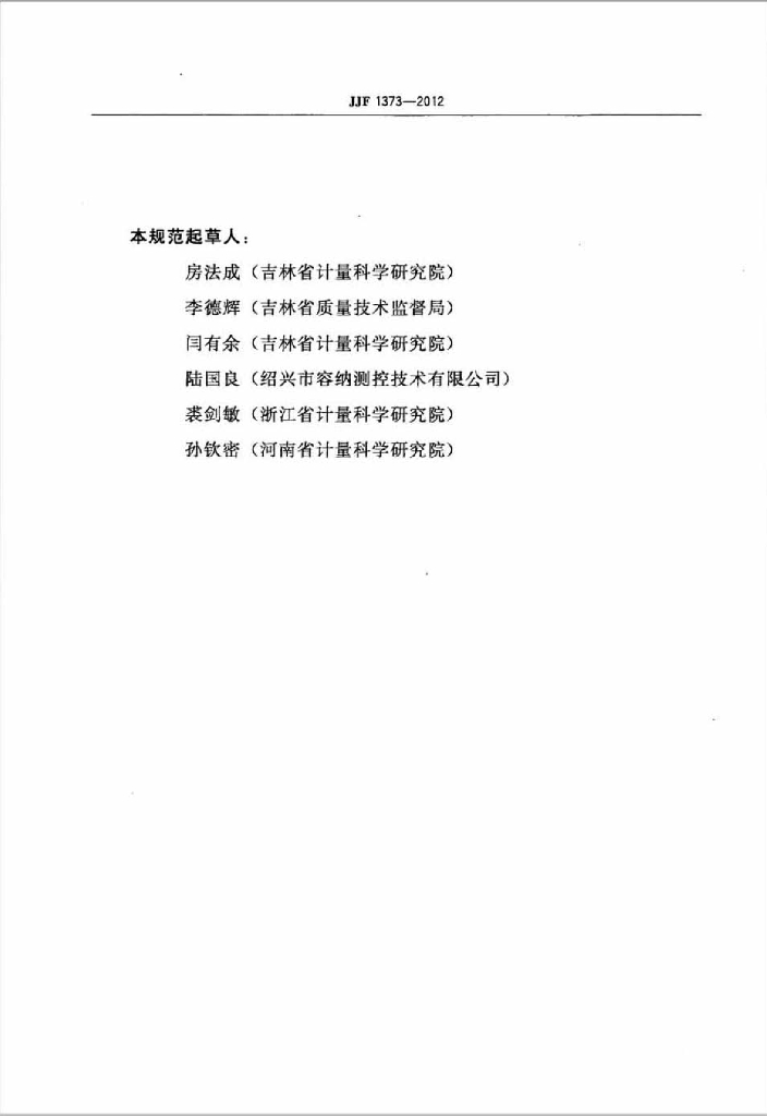 房法成(吉林省计量科学研究院)、李德辉(吉林省质量技术监督局)、闫有余(吉林省计量科学研究院)、陆国良(绍兴市容纳测控技术有限公司)、裘剑敏(浙江省计量科学研究院)、孙钦密(河南省计量科学研究院)