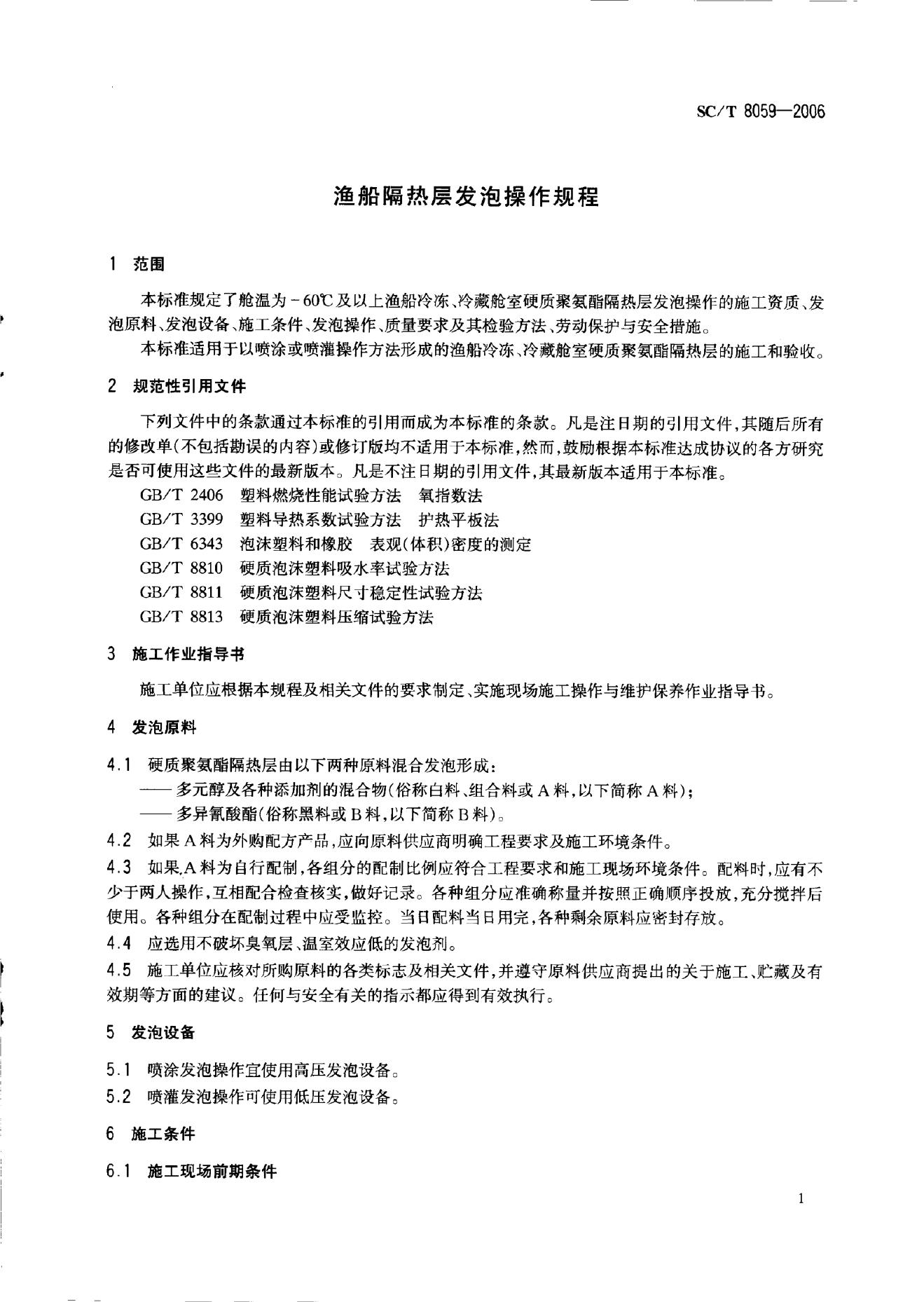 SC/T 8059-2006 渔船隔热层发泡操作规程