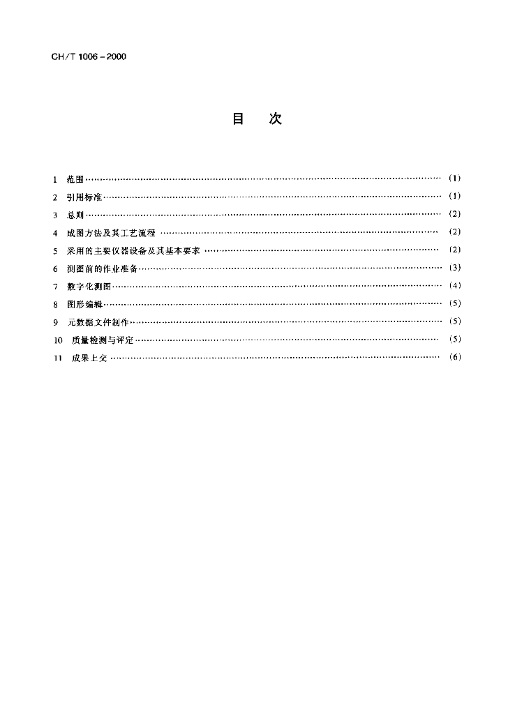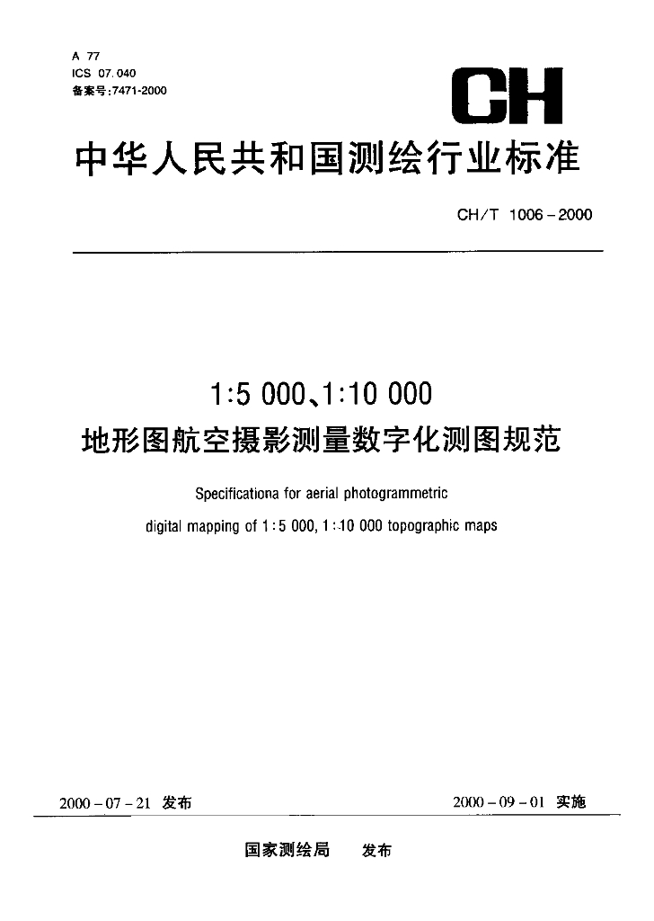 CH/T 1006-2000 1:5000、1:10000地形图航空摄影测量数字化测图规范
