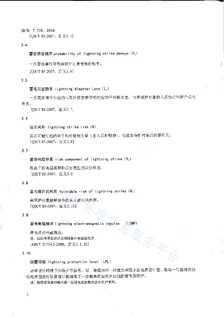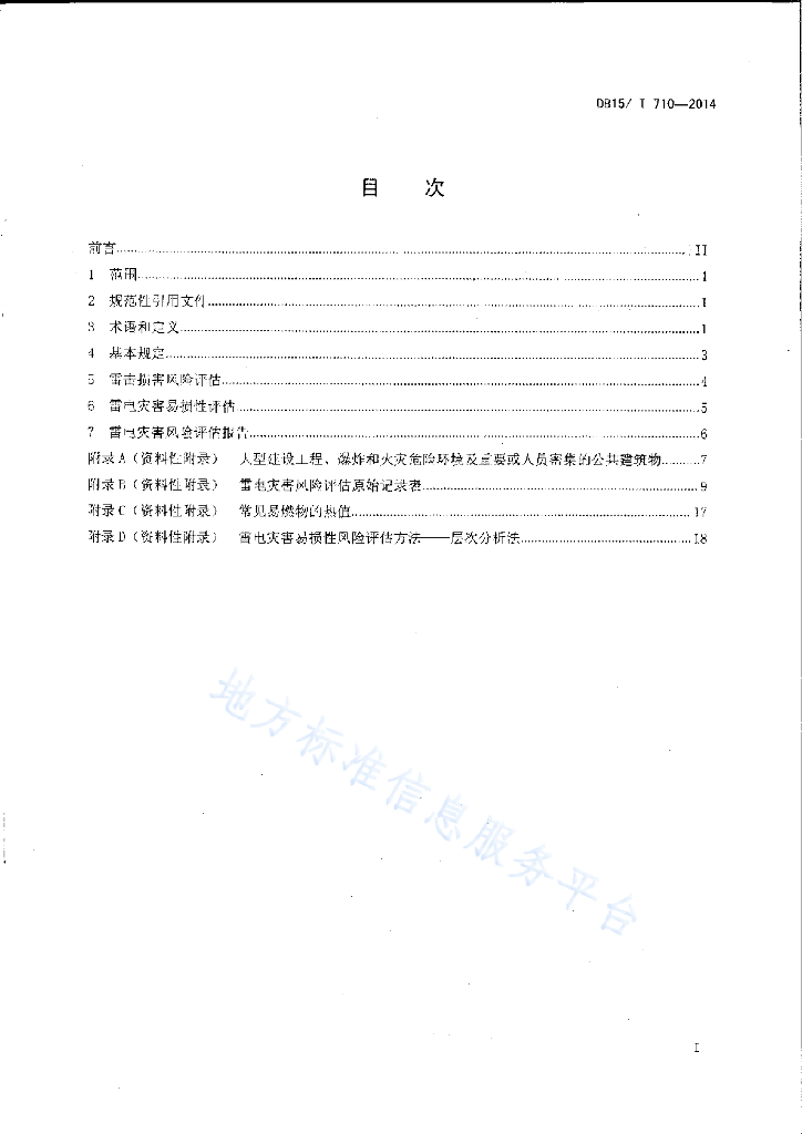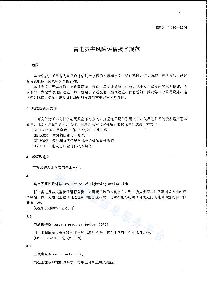 DB15/T 710-2014 雷电灾害风险评估技术规范