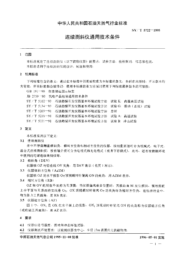 SY/T 5722-1995 连续测斜仪通用技术条件