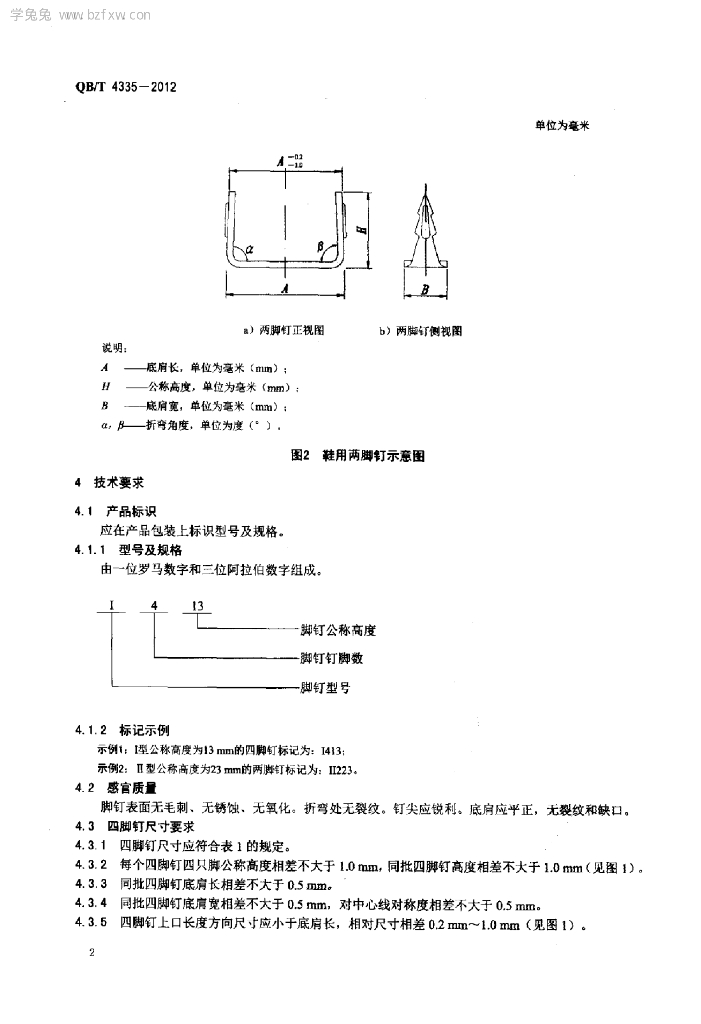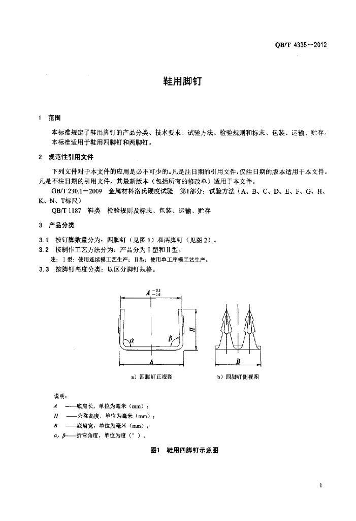 QB/T 4335-2012 鞋用脚钉