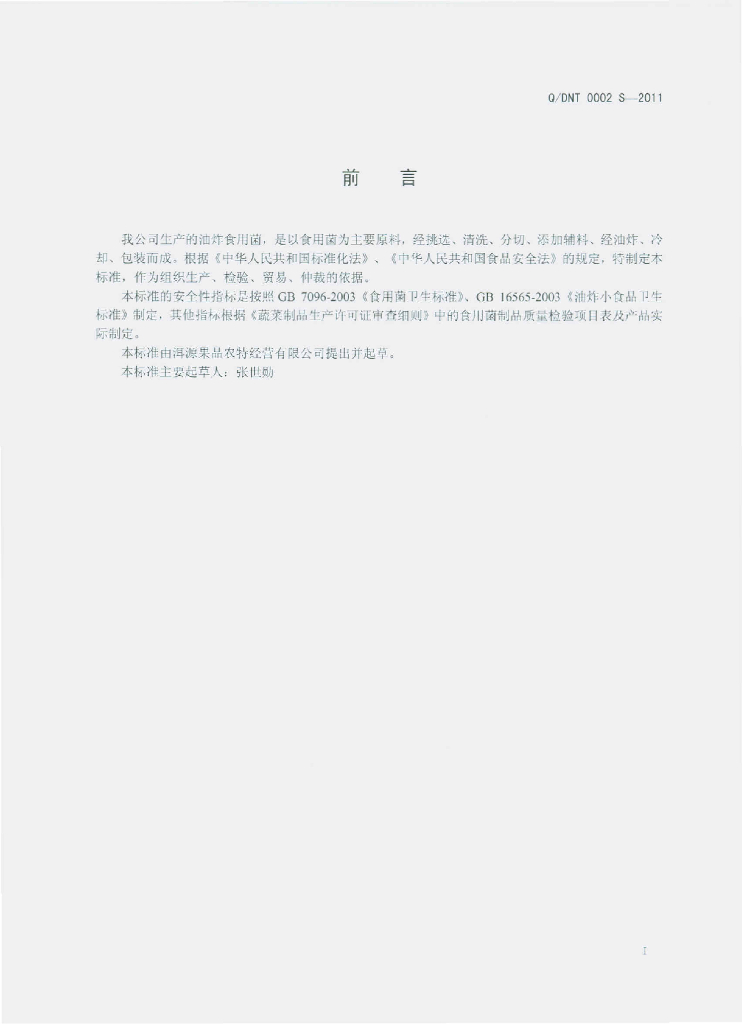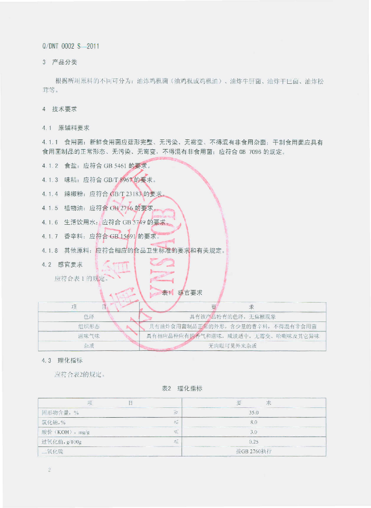 Q/DNT 0002S-2011 油炸食用菌