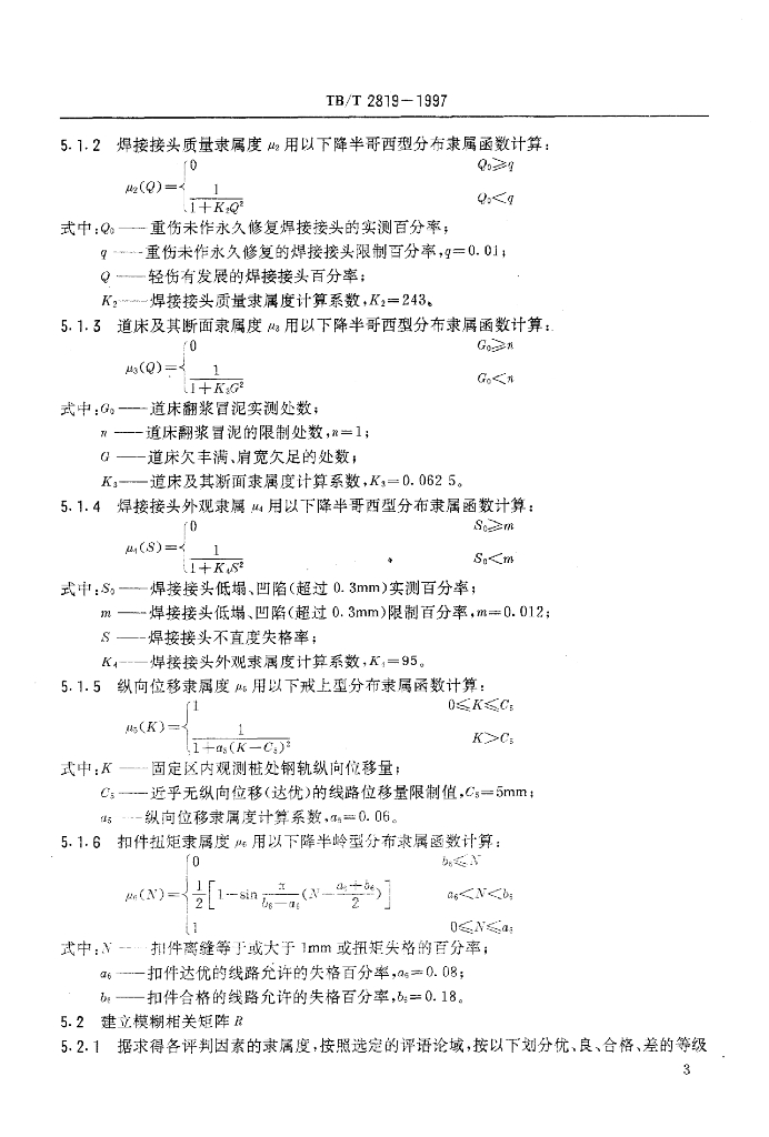 TB/T 2819-1997 无缝线路质量状态检测评定方法