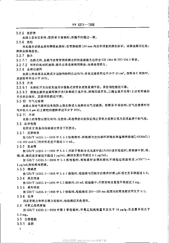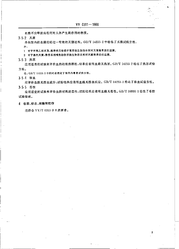YY 0311-1998 一次性使用血路产品通用技术条件