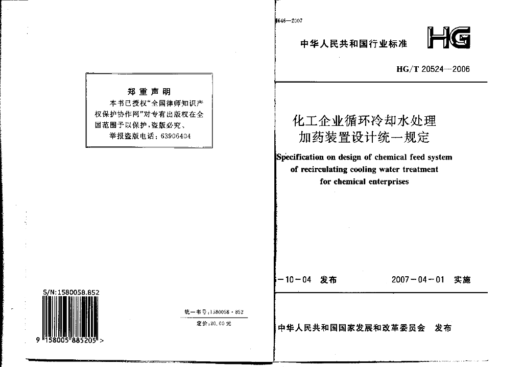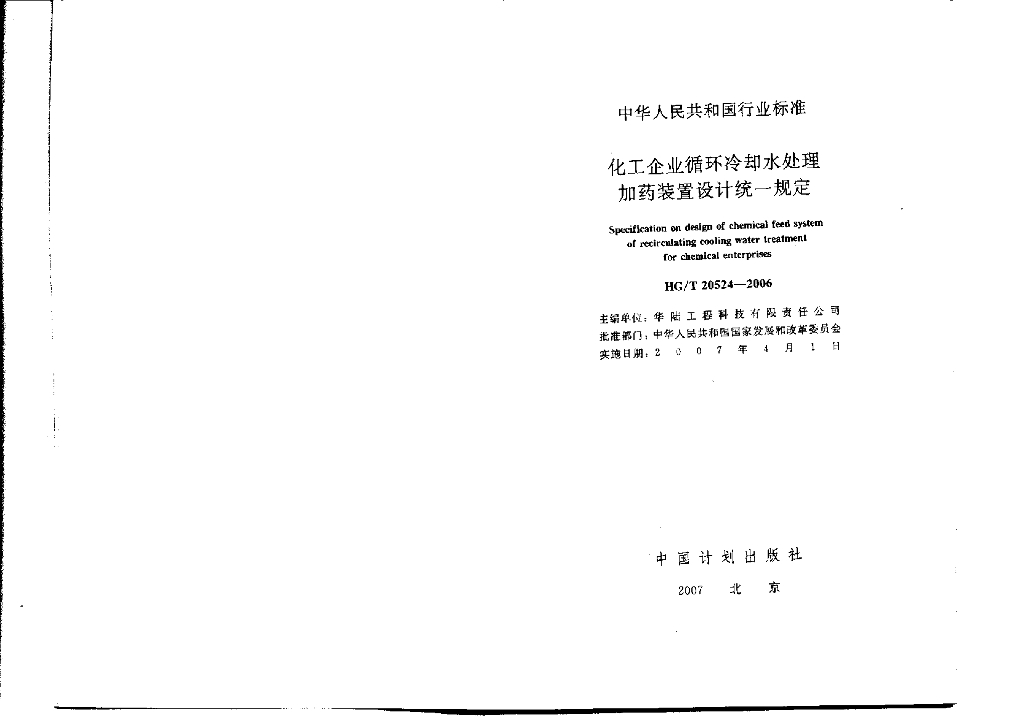 HG/T 20524-2006 化工企业循环冷却水处理加药装置设计统一规定