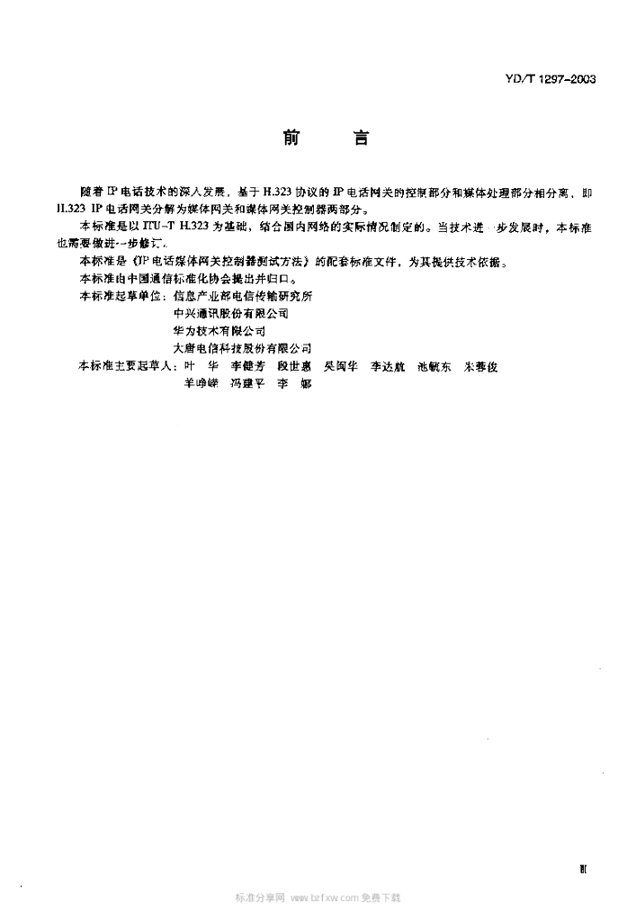 YD/T 1297-2003 IP 电话媒体网关控制器技术要求