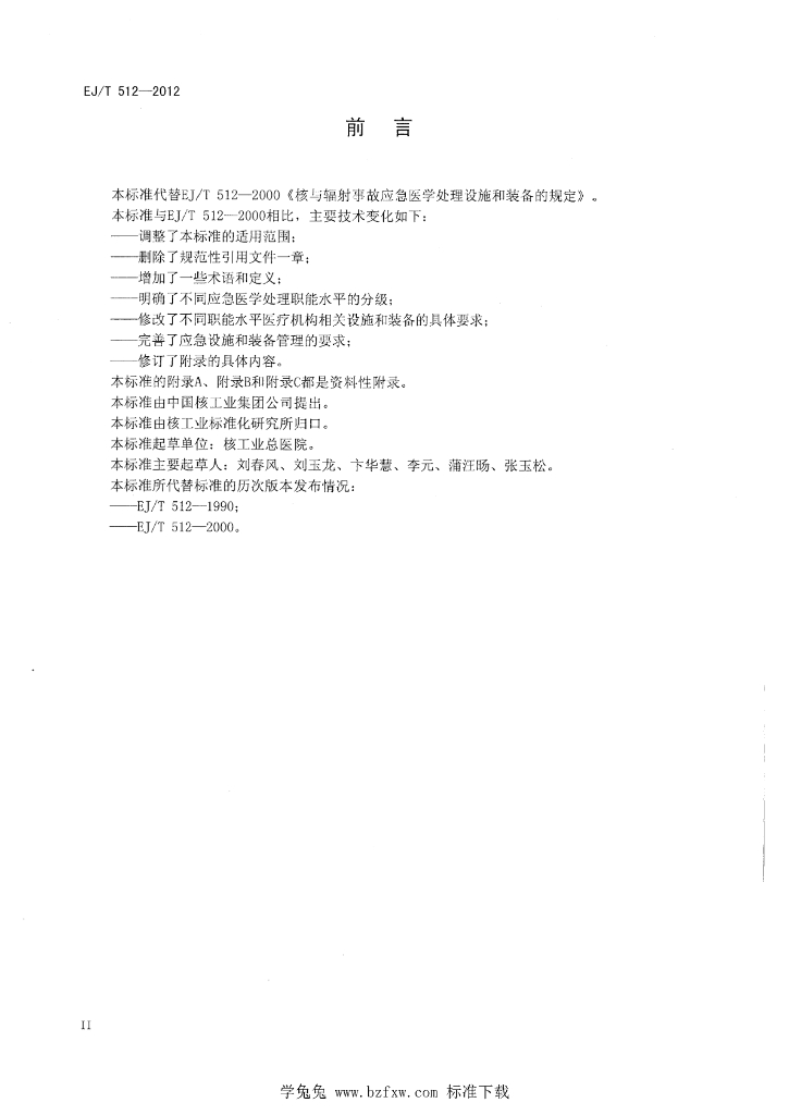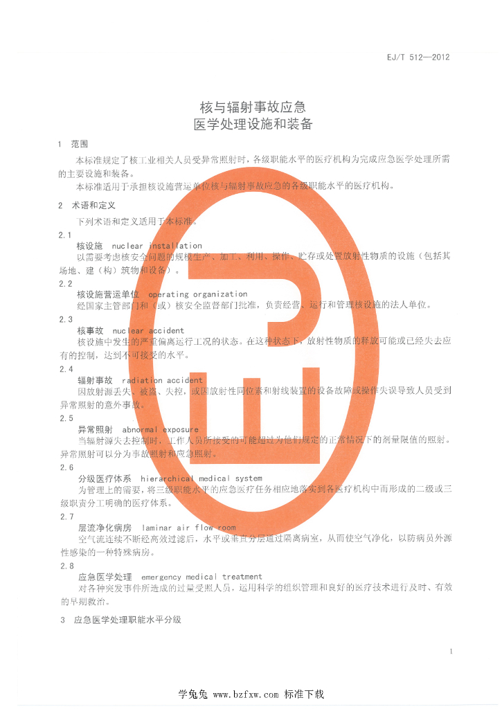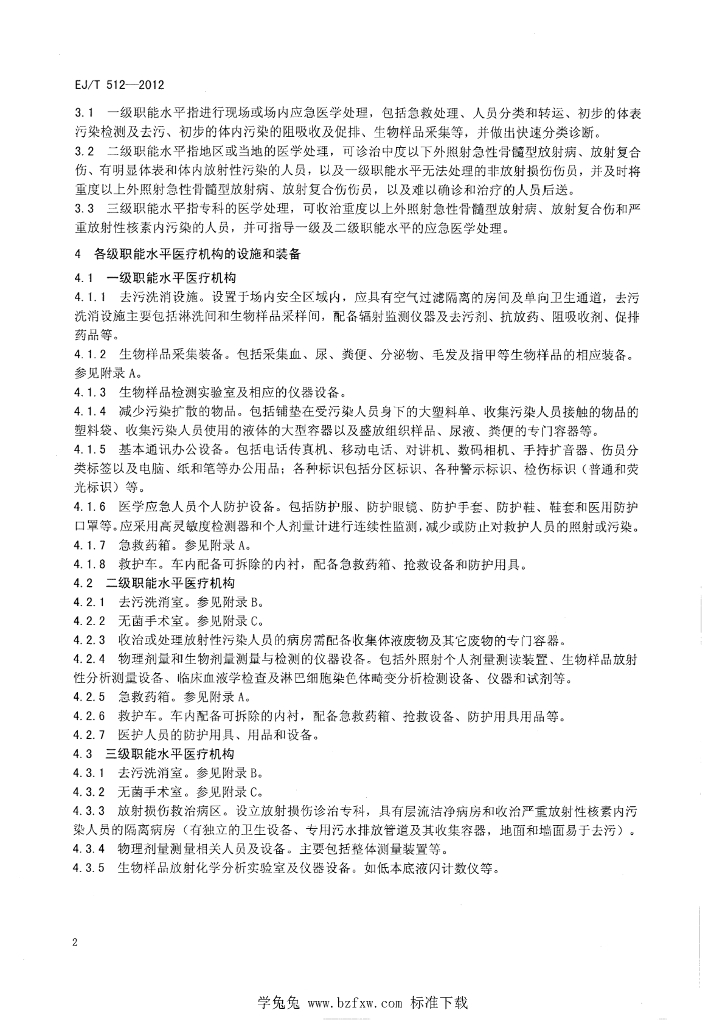 EJ/T 512-2012 核与辐射事故应急医学处理设施和装备