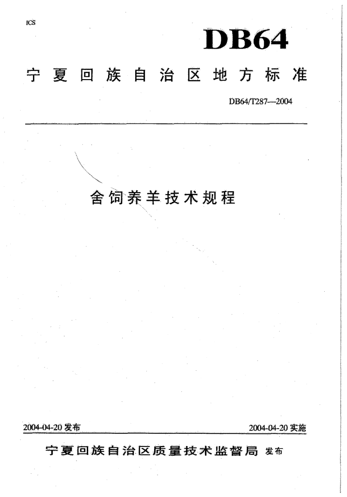 DB64/T 287-2004 舍饲养羊技术规程