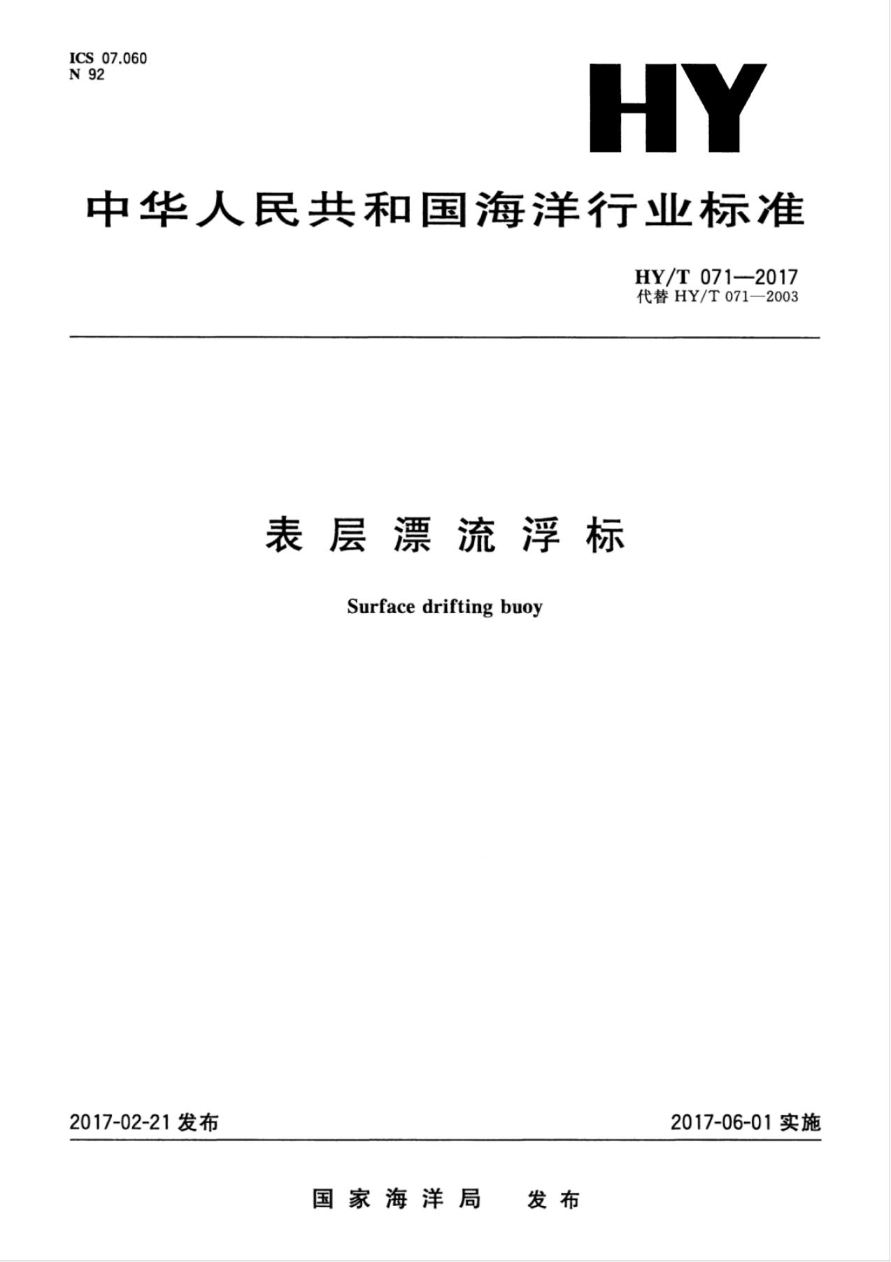 HY/T 071-2003 表层漂流浮标