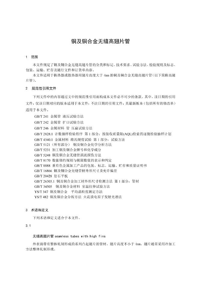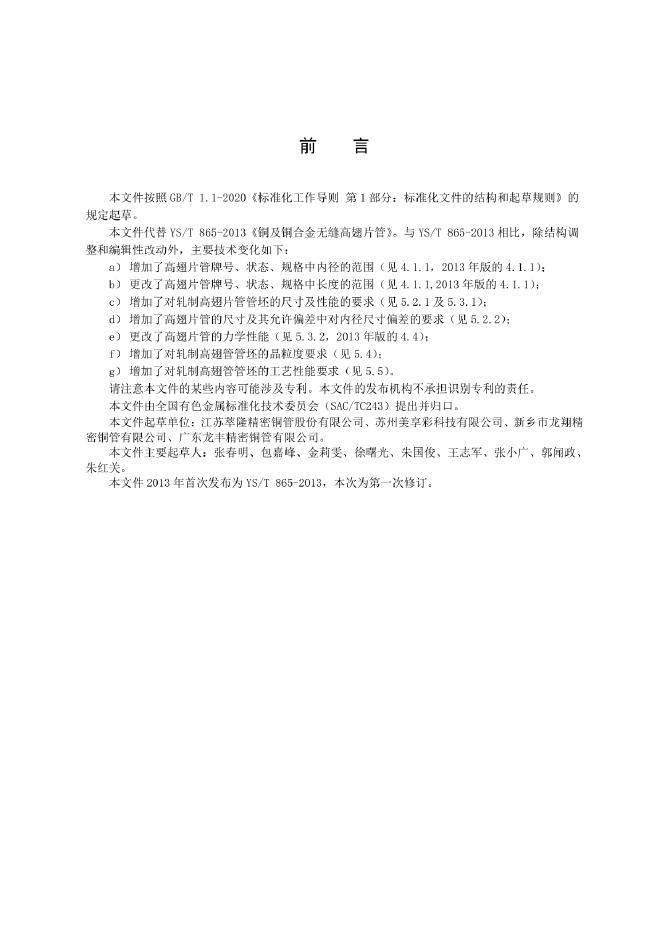 YS/T 865-2024 铜及铜合金无缝高翅片管