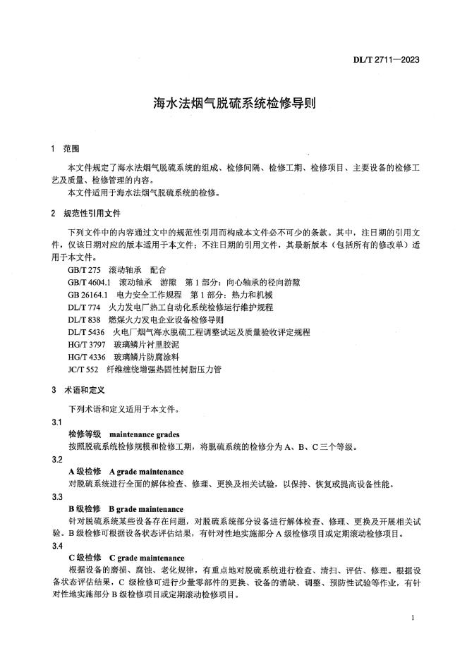 DL/T 2711-2023 海水法烟气脱硫系统检修导则