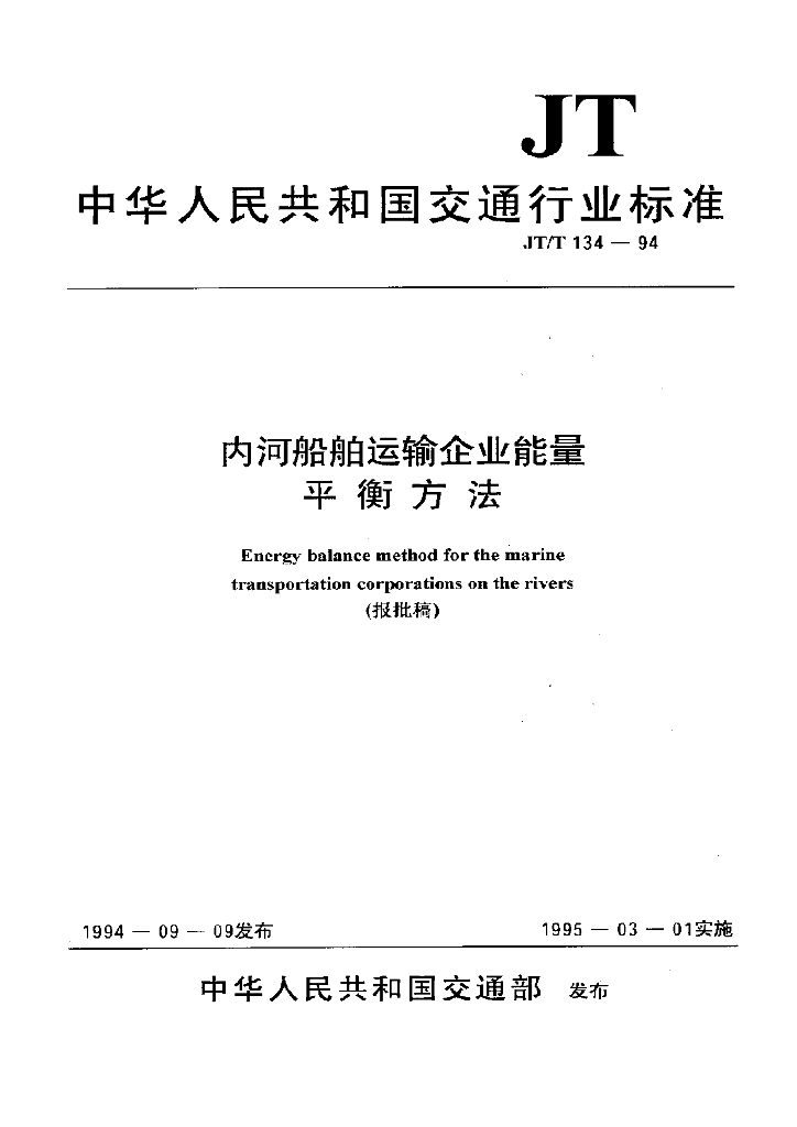 JT/T 134-1994 内河船舶运输企业能量平衡方法