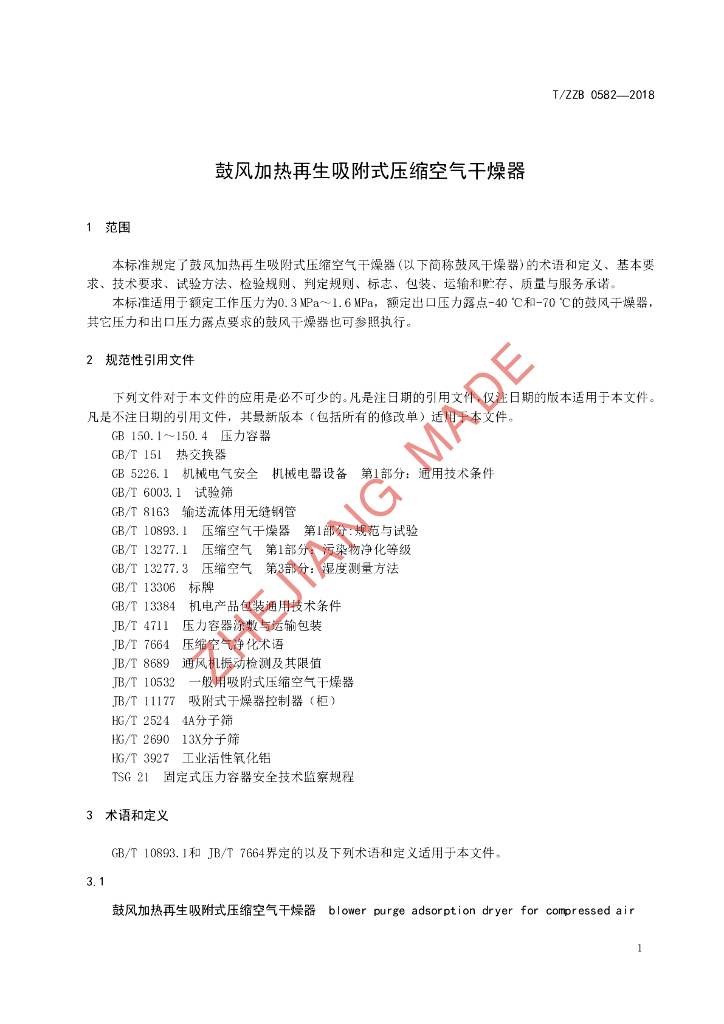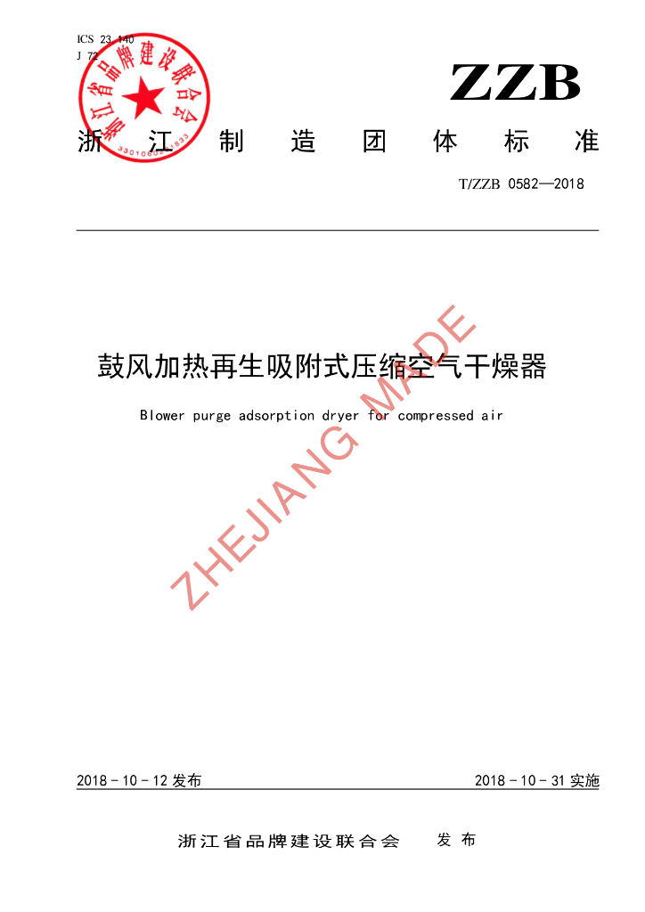 T/ZZB 0582-2018 鼓风加热再生吸附式压缩空气干燥器