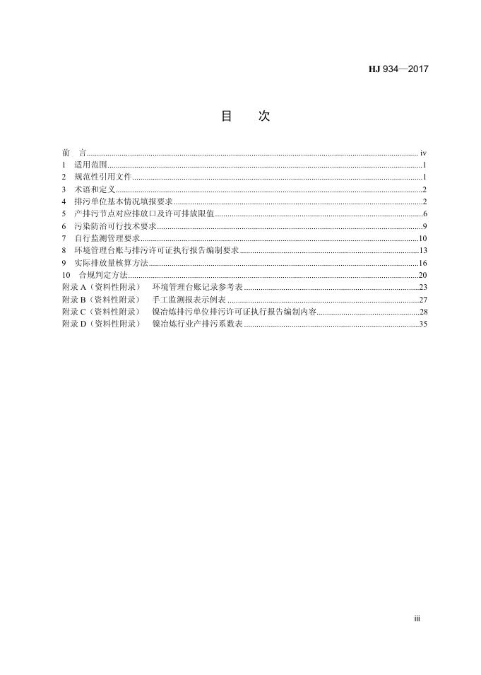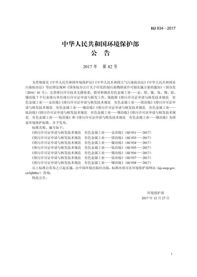 HJ 934-2017 排污许可证申请与核发技术规范 有色金属工业-镍冶炼