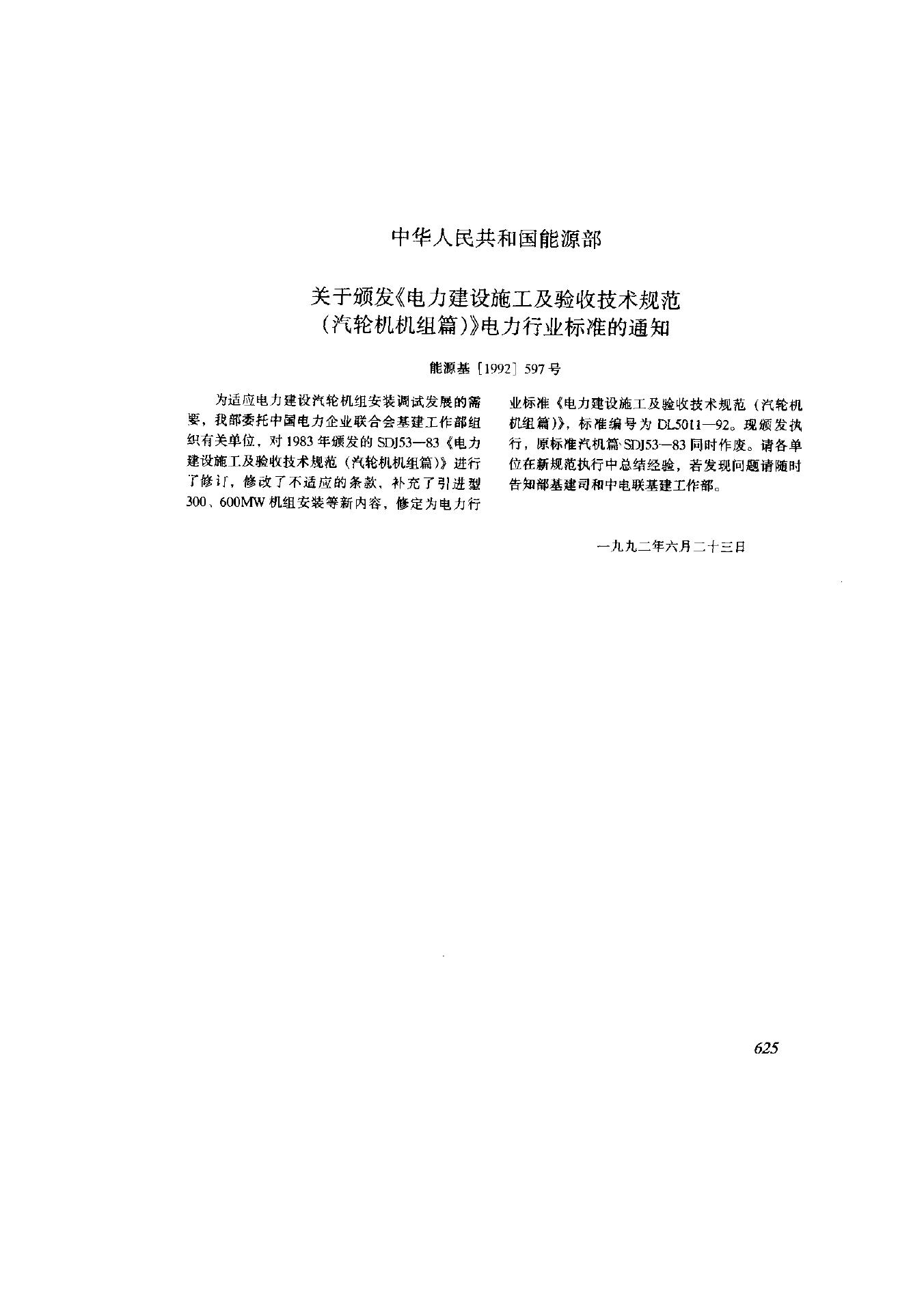 DL 5011-1992 电力建设施工及验收规范 汽轮机机组篇