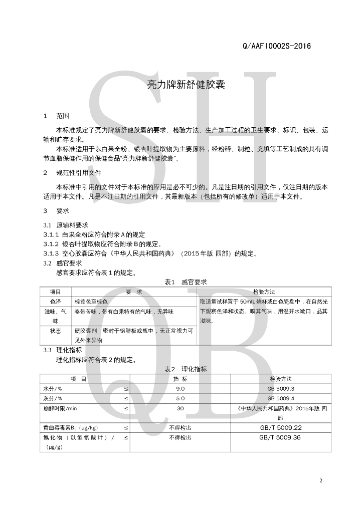Q/AAFI 0002S-2016 亮力牌新舒健胶囊