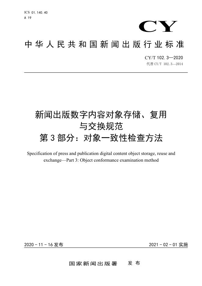 CY/T 102.3-2020 新闻出版数字内容对象存储、复用与交换规范 第3部分:对象一致性检查方法