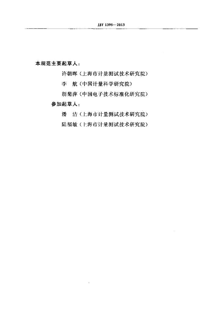 许朝晖(上海市计量测试技术研究院)、李航(中国计量科学研究院)、胡菊萍(中国电子技术标准化研究院)、潘洁(上海市计量测试技术研究院)、陆福敏(上海市计量测试技术研究院)