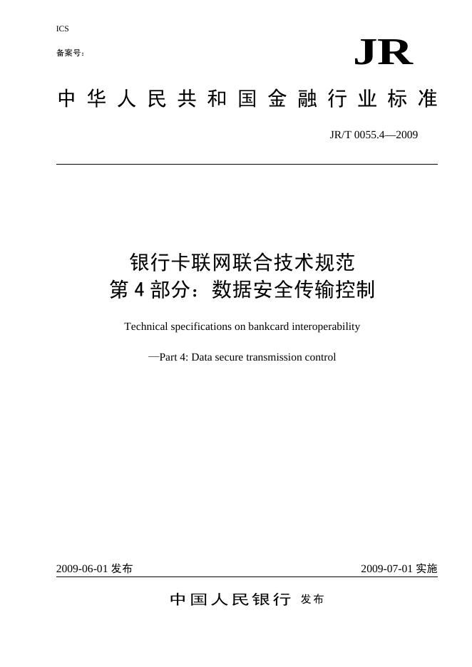 JR/T 0055.4-2009 银行卡联网联合技术规范 第4部分:数据安全传输控制