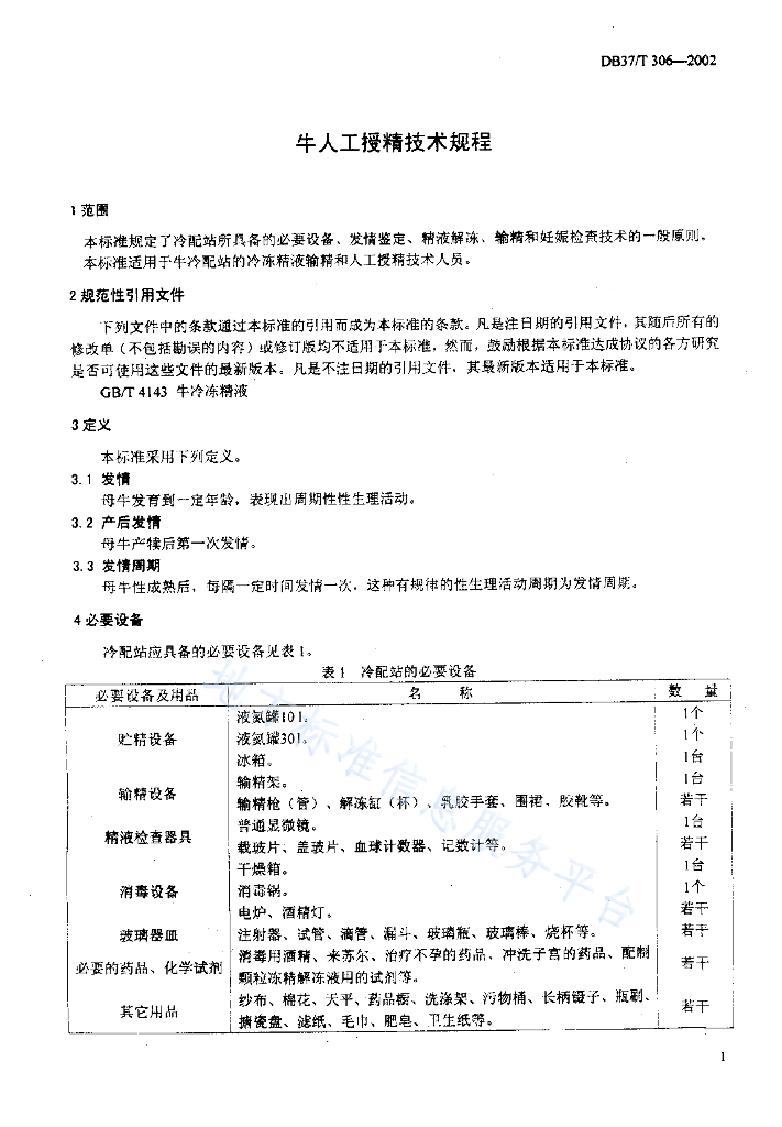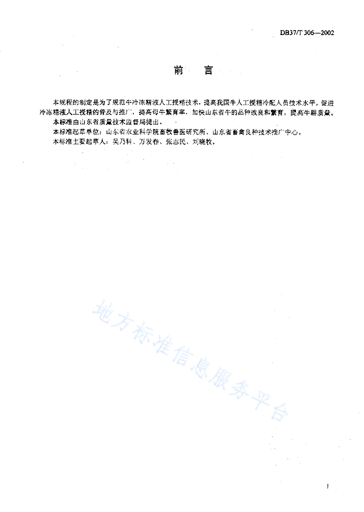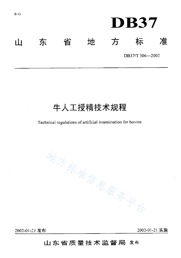 DB37/T 306-2002 牛人工授精技术规程