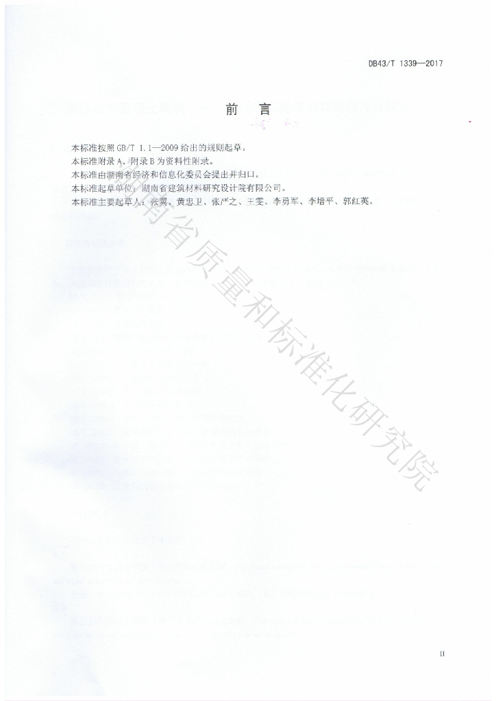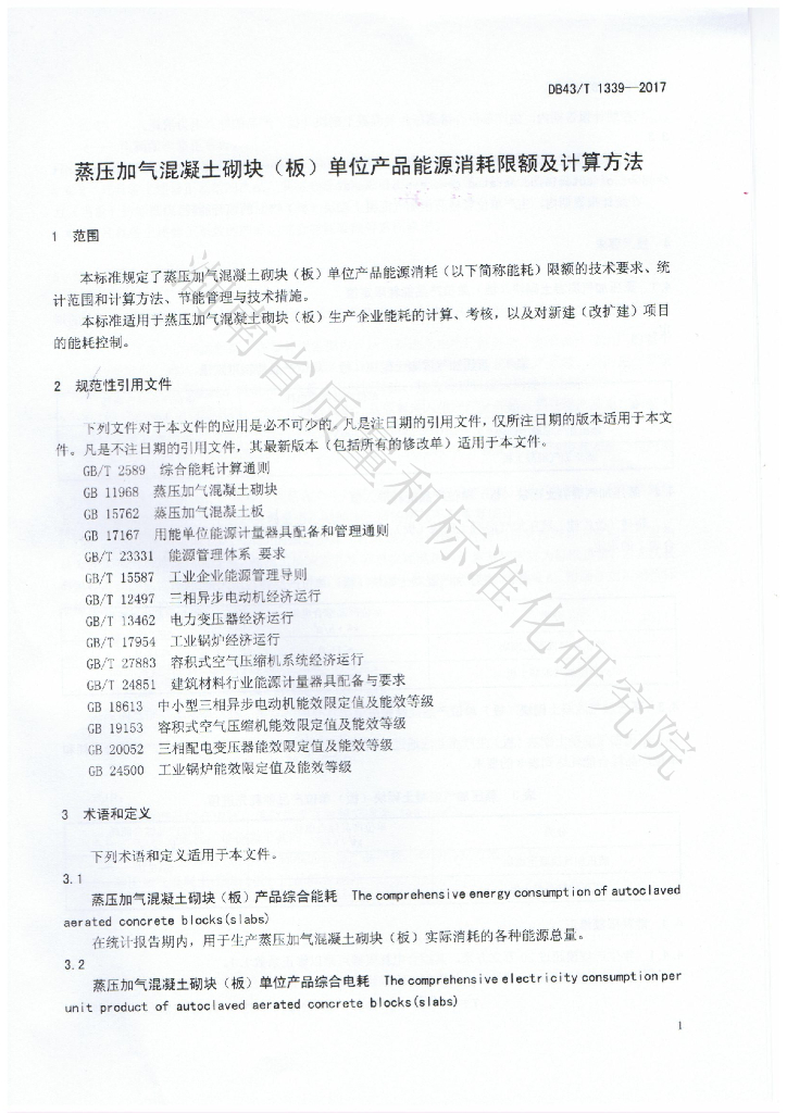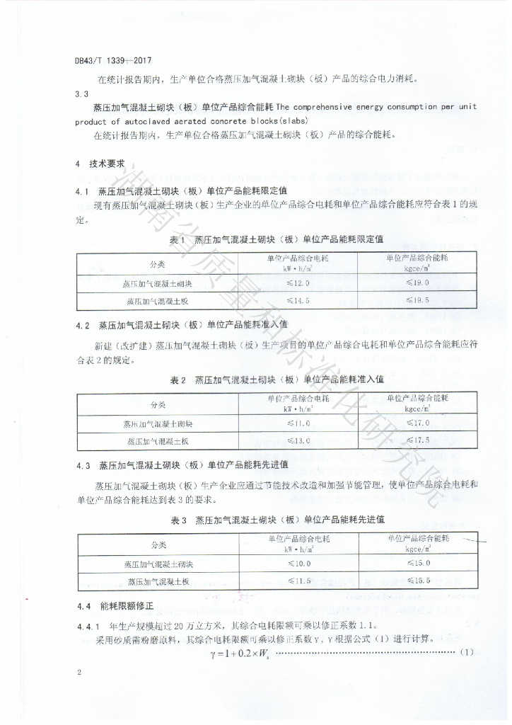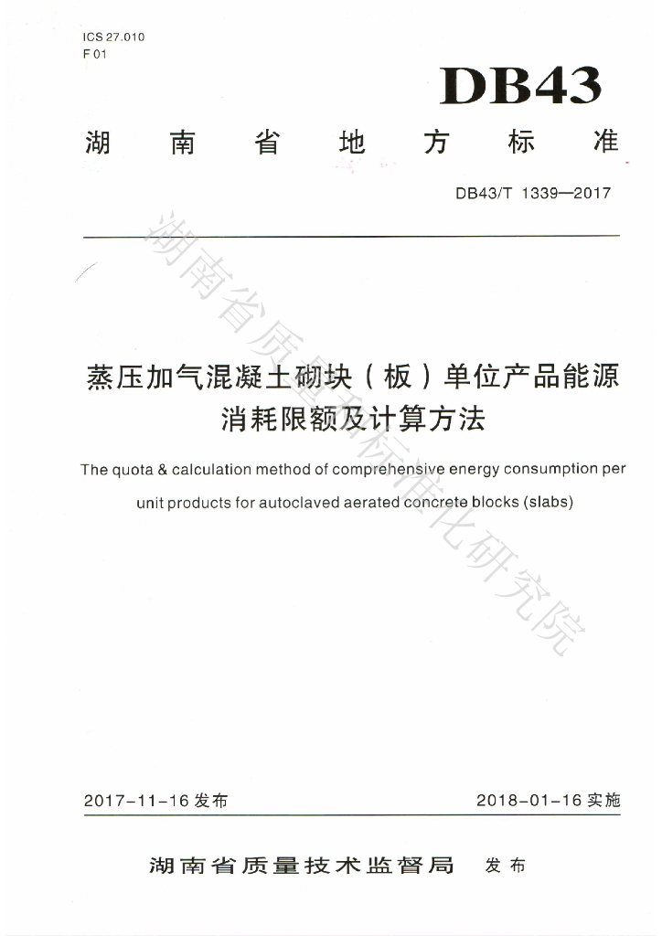 DB43/T 1339-2017 蒸压加气混凝土砌块(板)单位产品能源消耗限额及计算方法