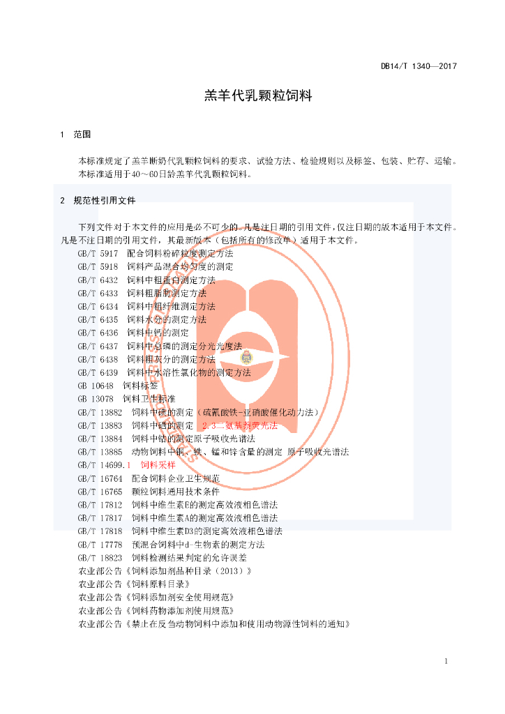 DB14/T 1340-2017 羔羊代乳颗粒饲料