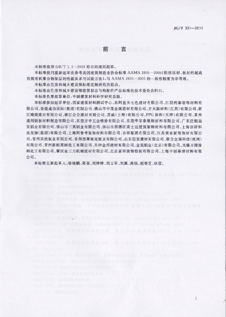 JG/T 331-2011 建筑幕墙用氟碳铝单板制品