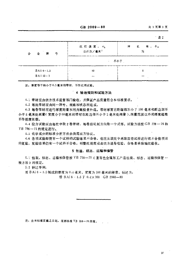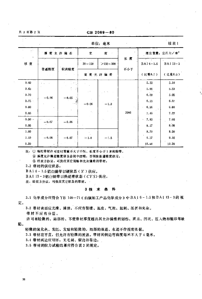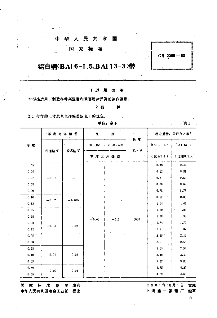 GB/T 2069-1980 铝白铜 (BAI6-1.5 BAI13-3)带