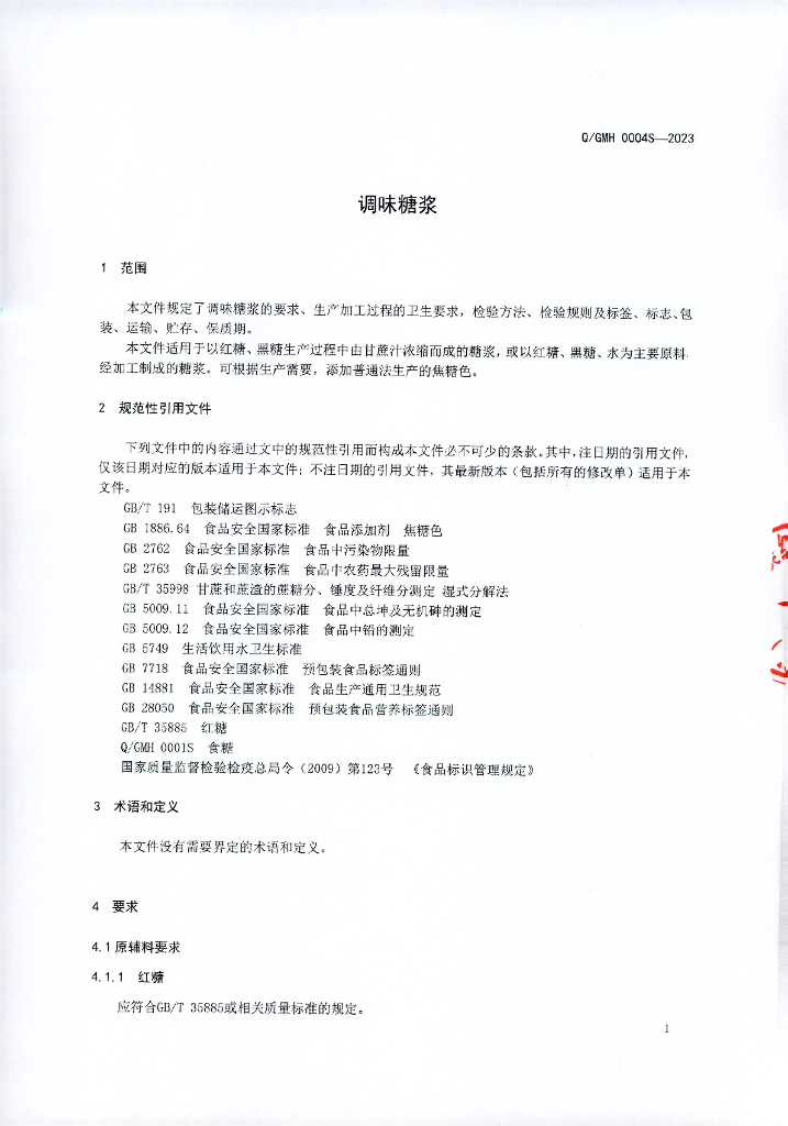 Q/GMH 0004S-2023 调味糖浆 广西南宁桂美红食品有限公司