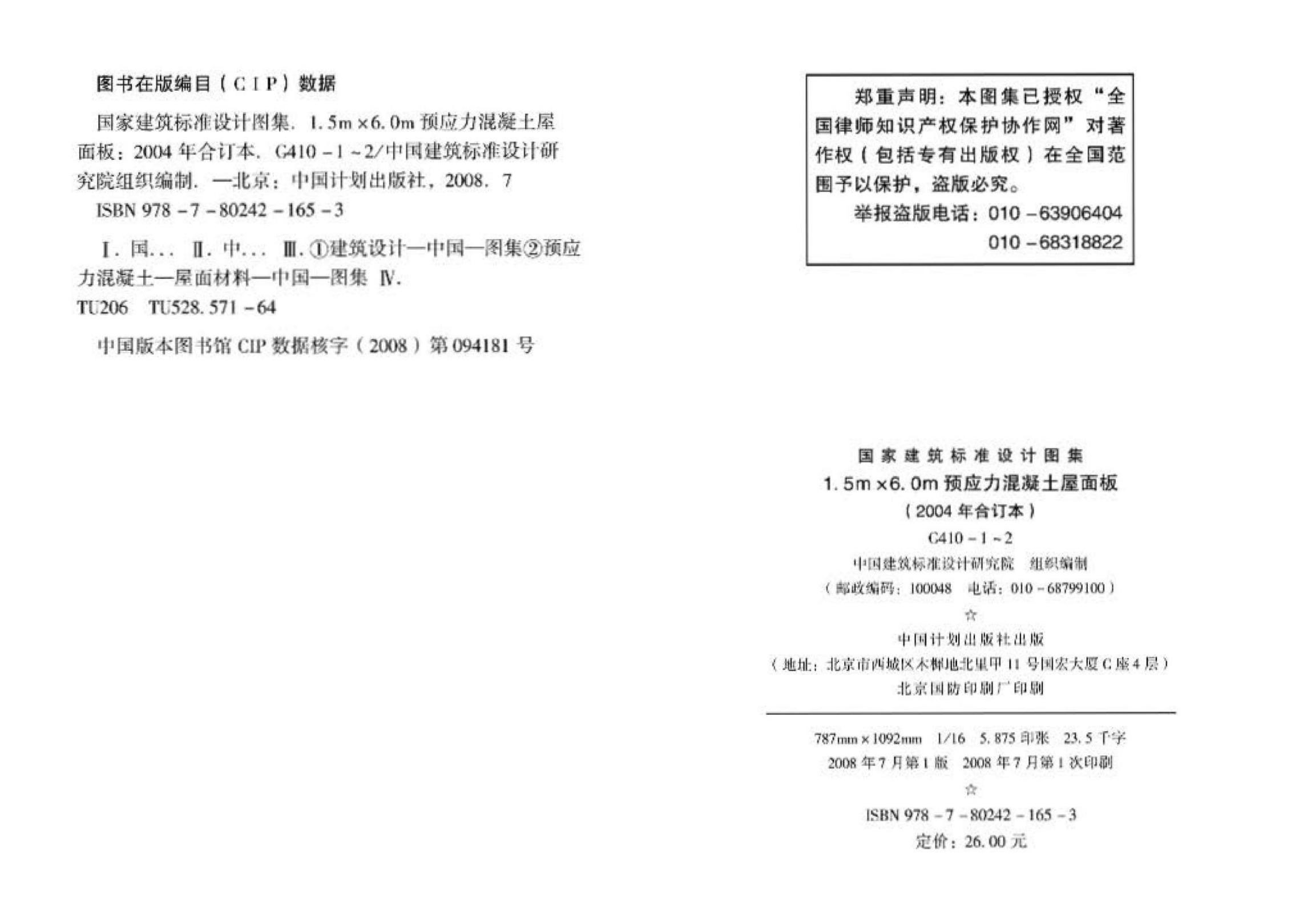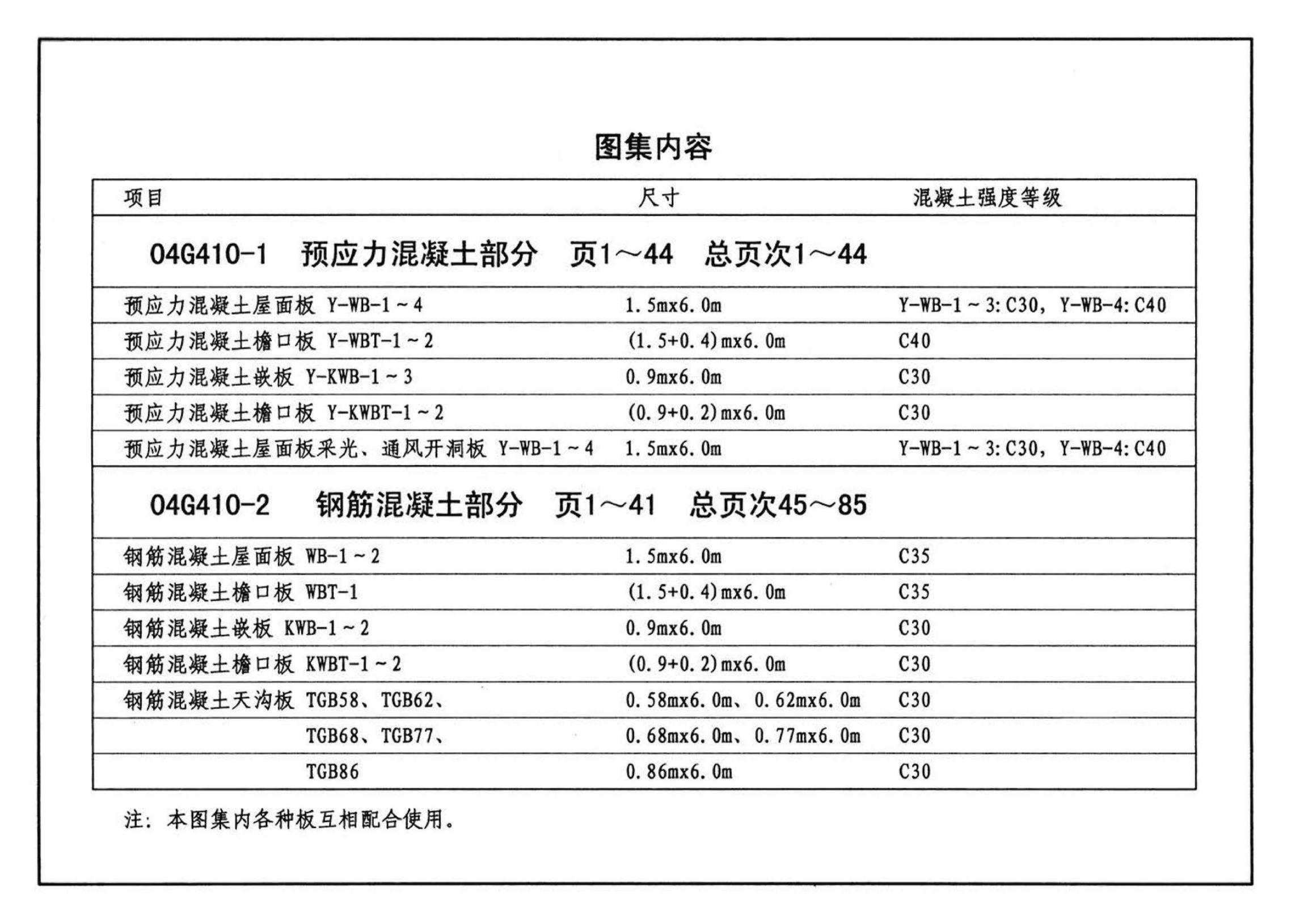 G410-1~2 1.5m×6.0m预应力混凝土屋面板设计图集(2004年合订本)