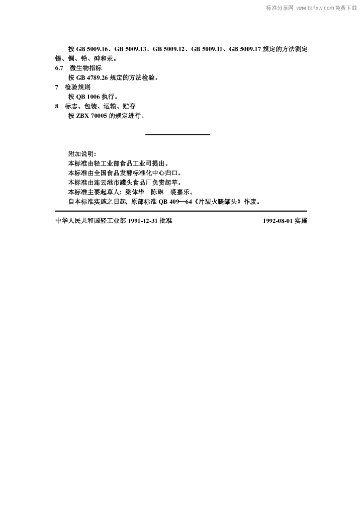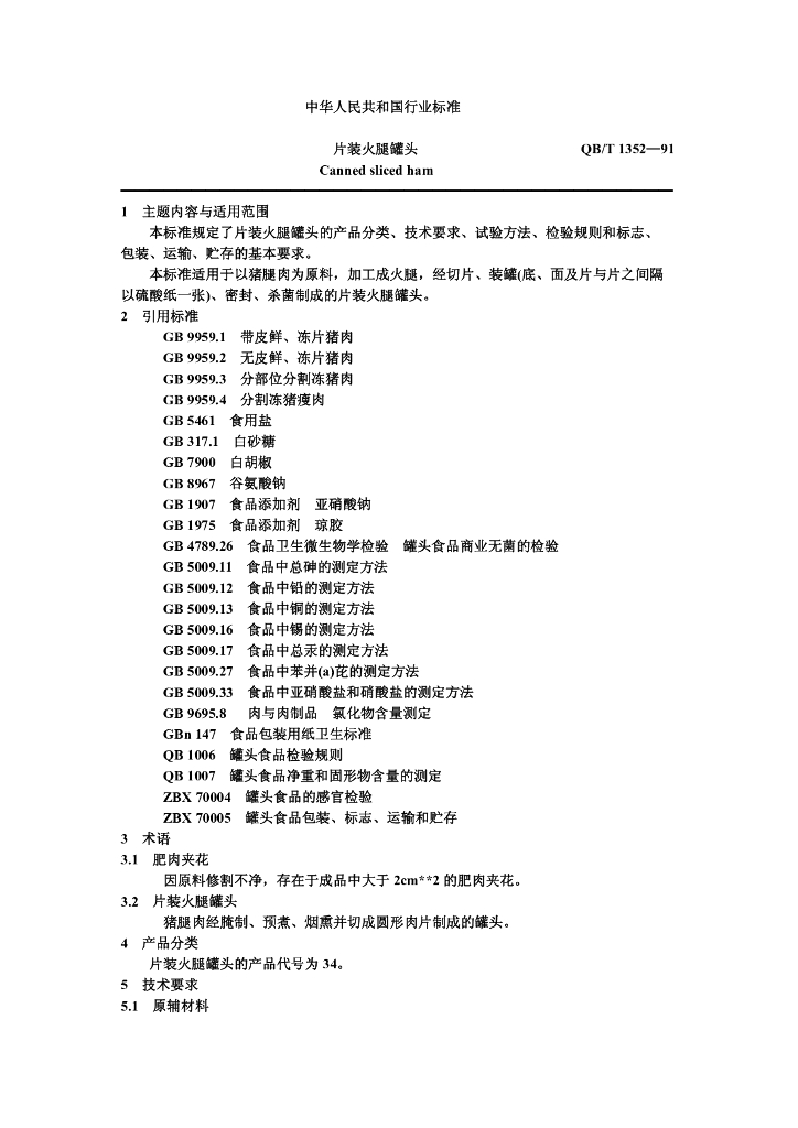 QB/T 1352-1991 片装火腿罐头
