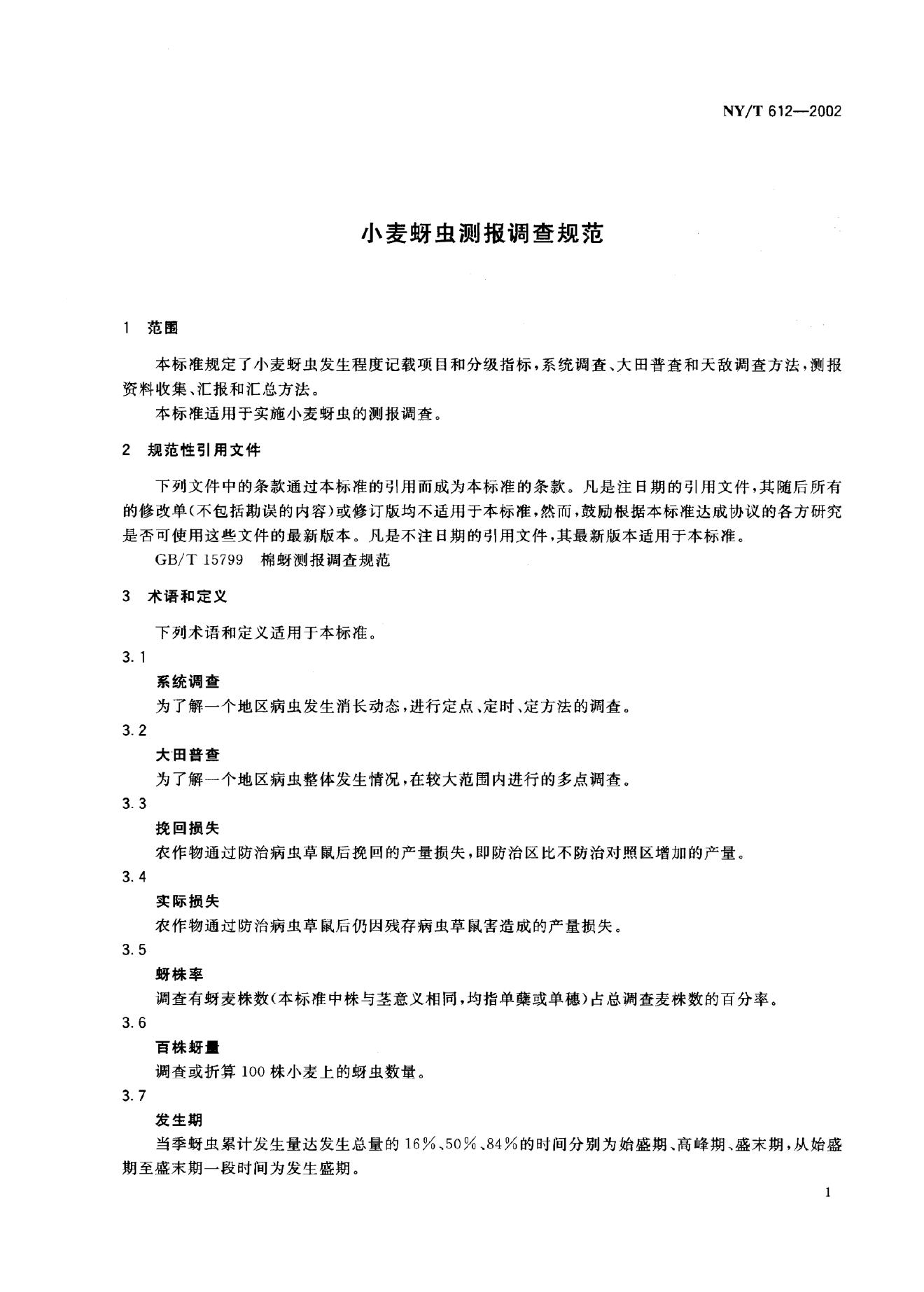 NY/T 612-2002 小麦蚜虫测报调查规范