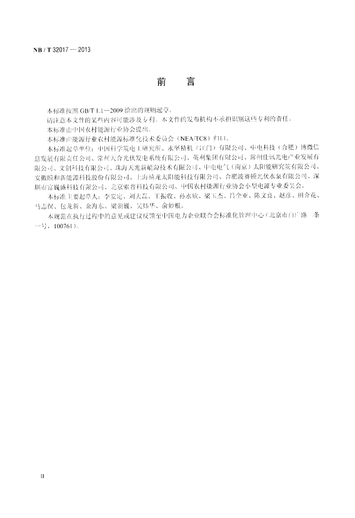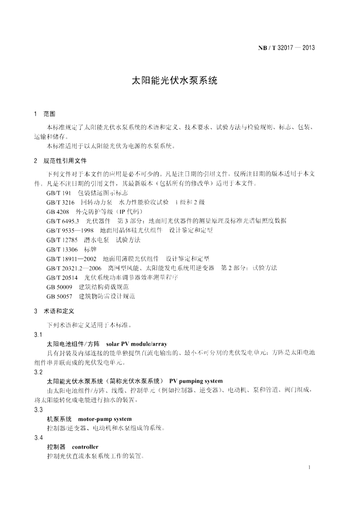 NB/T 32017-2013 太阳能光伏水泵系统
