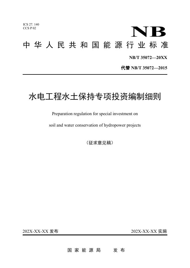 NB/T 35072-20XX 水电工程水土保持专项投资编制细则(征求意见稿)