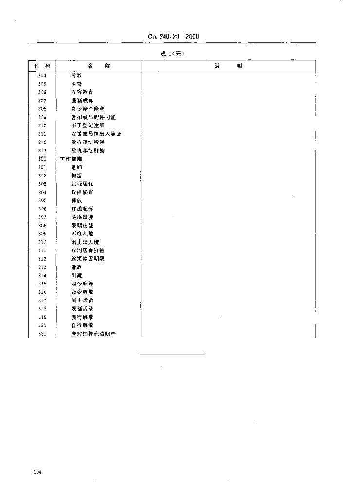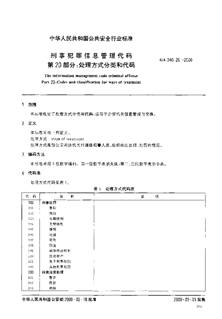 GA 240.20-2000 刑事犯罪信息管理代码 第20部分:处理方式分类和代码