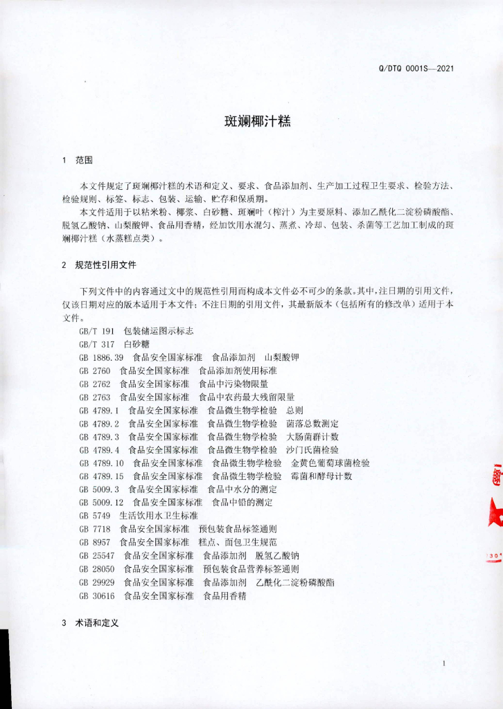 Q/DTQ 0001S-2021 斑斓椰汁糕