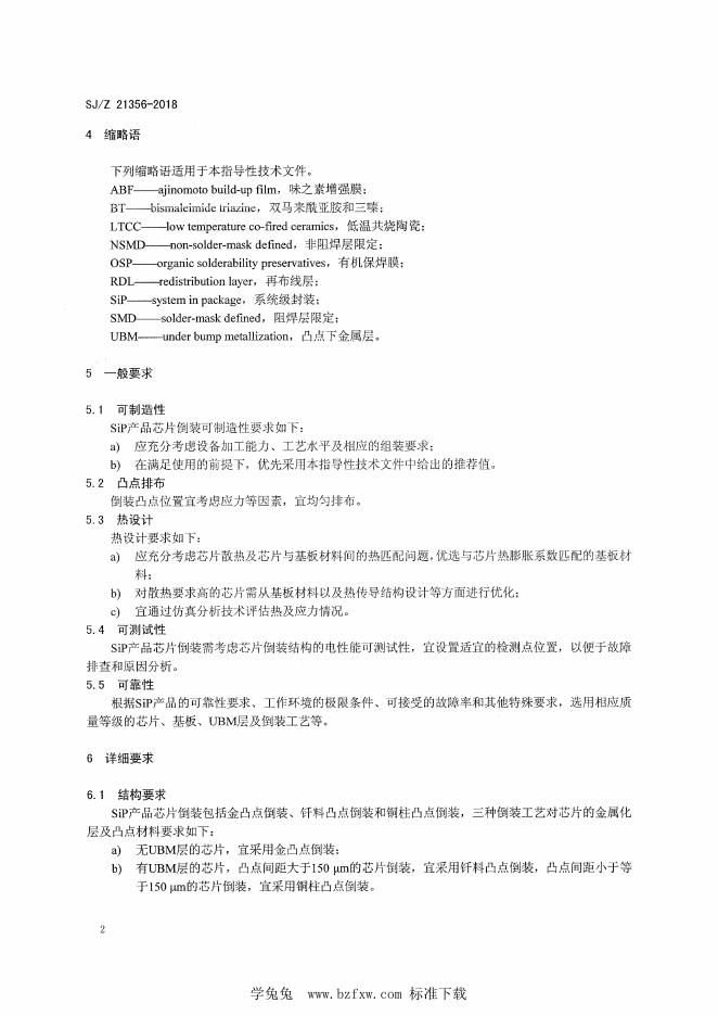 SJ/Z 21356-2018 SiP产品芯片倒装工艺设计指南