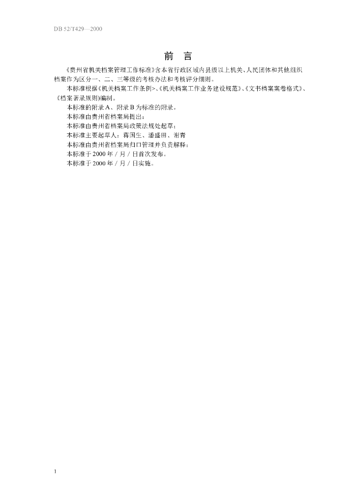 DB52/T 429-2000 贵州省机关档案管理工作标准